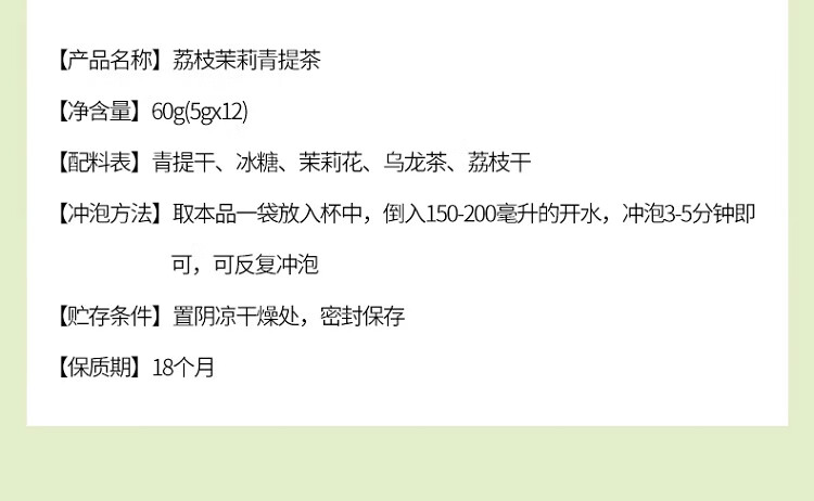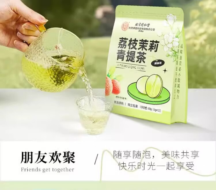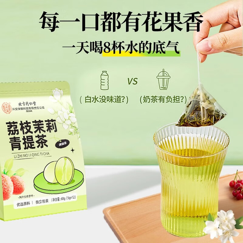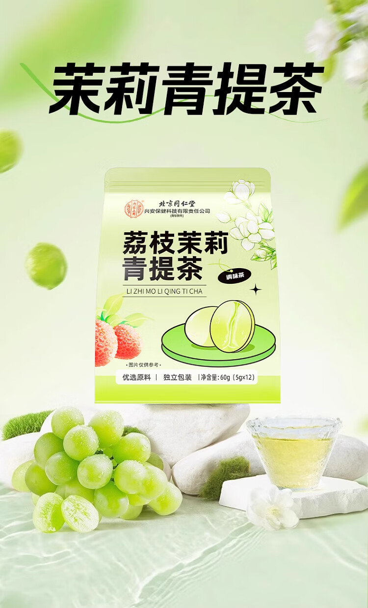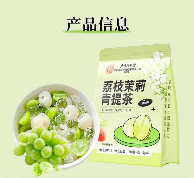 北京同仁堂内廷上用荔枝茉莉青提茶60g(5g×12)袋装