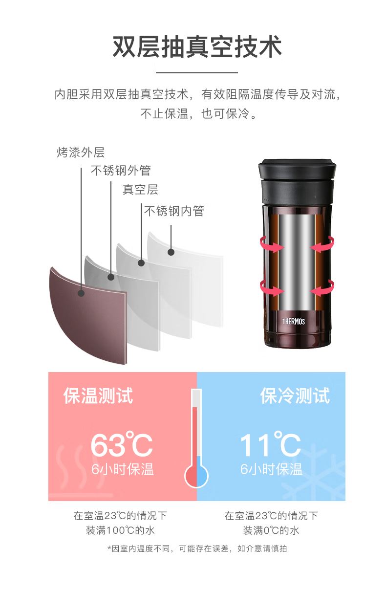 颜 色:酒红CBW 不锈钢SBK 金色GL 容 量:350ml 保温效力:63C以上(6小时) 保冷效力:10C以下(6小时) 外管材质:304不锈钢 内管材质:304不锈钢 密封圈:食品级硅胶 茶漏材质:304不锈钢、食品级PP、食品级硅胶