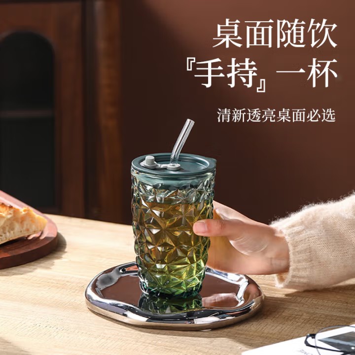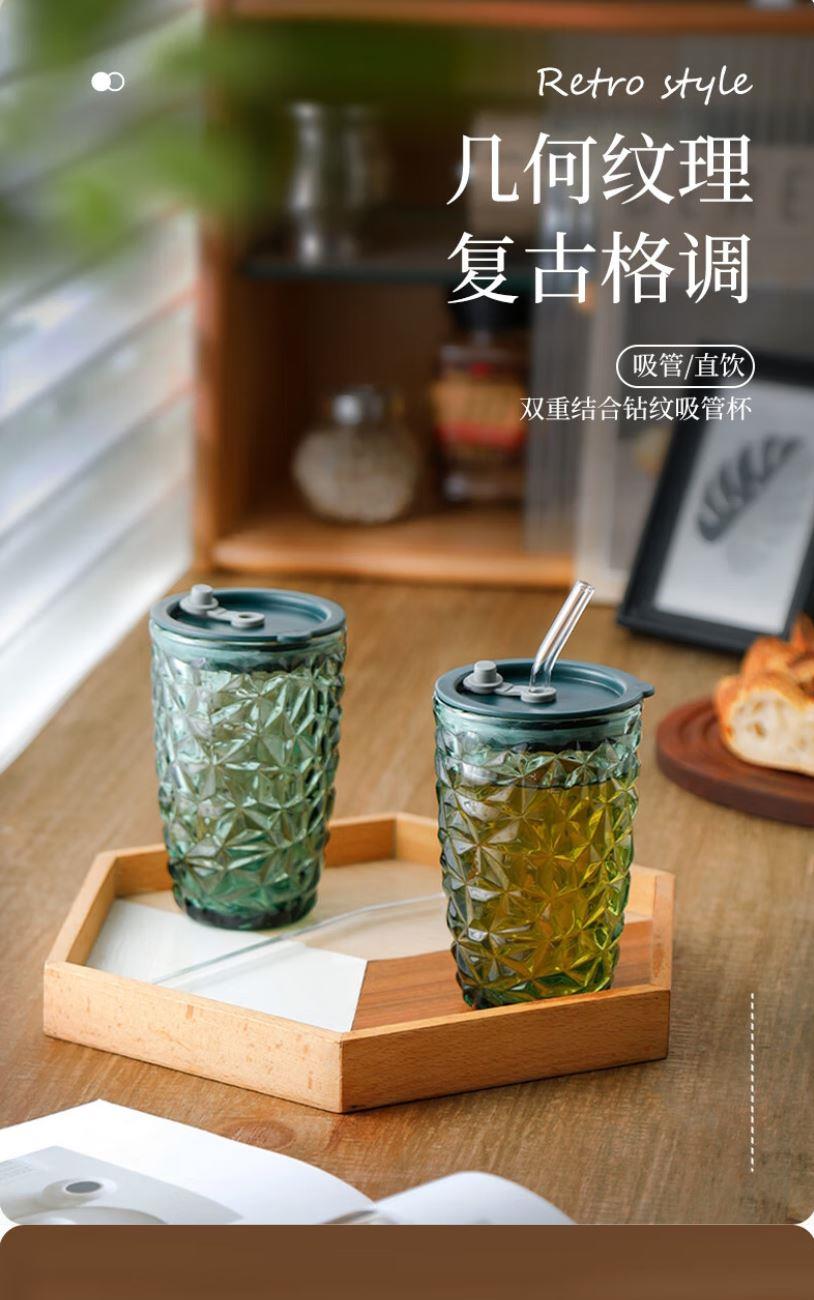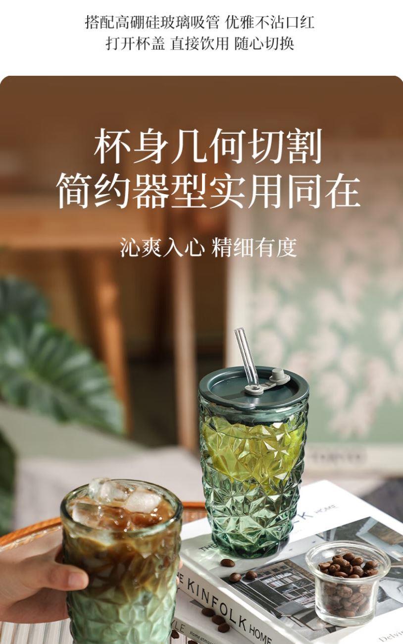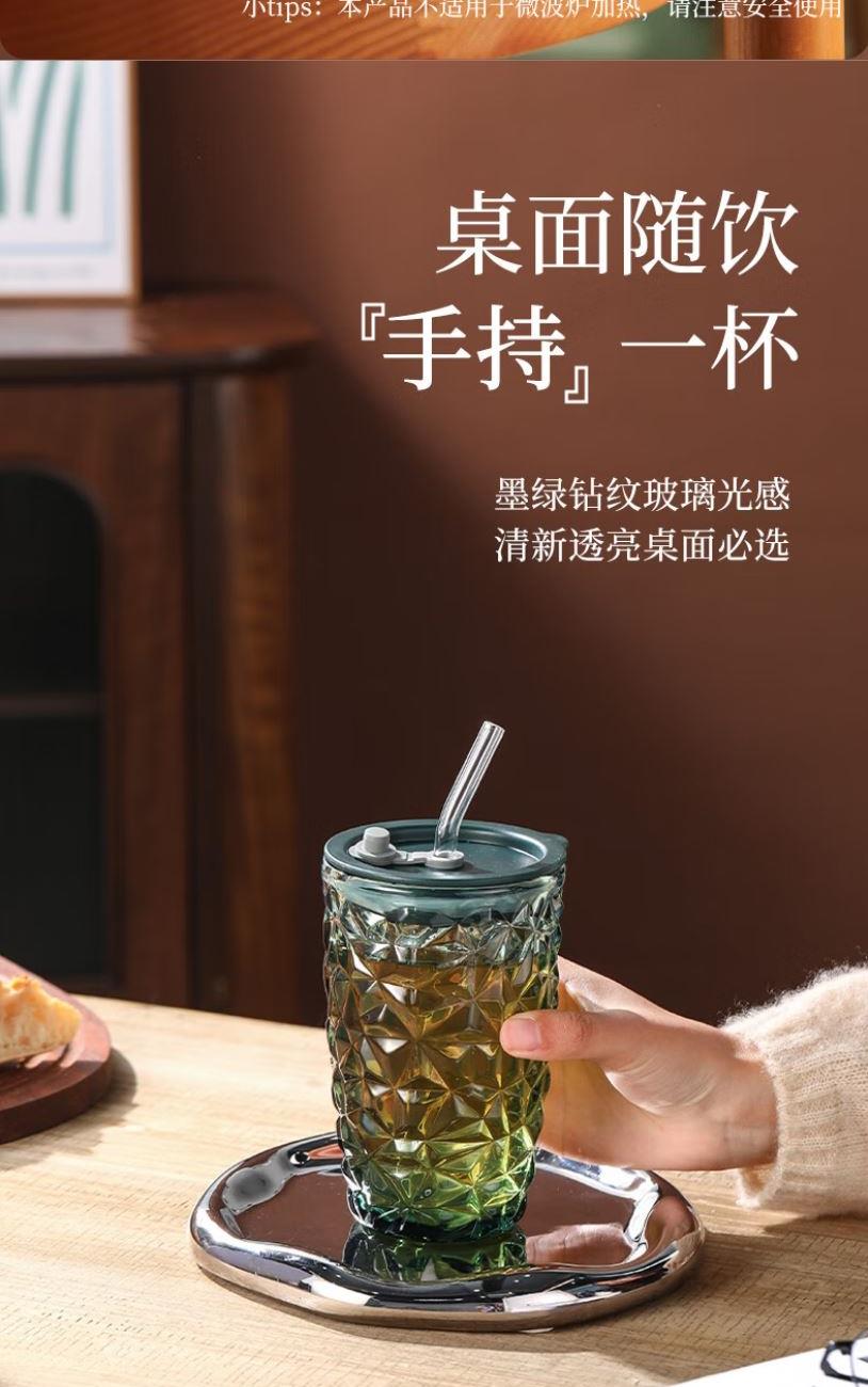 颜色:绿色 容量:450 尺寸:60*88*136mm 材质:玻璃材质,通透晶莹的无铅玻璃,几何杯身经典造型,浮雕工艺非同一般的手感。两种容量设计。 包装:单瓦盒