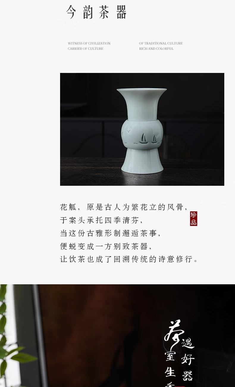 材 质:青瓷、胡桃木、老山檀香 容 量:盖碗120ml、茶杯100ml 包装尺寸:L29.5  W21.1  H11.1cm 配 置:盖碗、茶杯、香炉、木托各一个,老山檀香一罐,2017年饼干形老白茶6泡(共30克),含手提袋礼盒包装。 1.以东方经典花觚为灵感,巧妙的融合盖碗、茶杯、香炉于一体,一器满足品茶与焚香的雅致需求,仪式感拉满。 2.花瓶寓平安,香炉刻帆船海鸥,象征顺遂吉祥,让美好祝愿伴日常茶事。 3.配 2017 年饼干老白茶与老山檀香,品醇厚茶汤、闻袅袅清香,开启视觉、嗅觉、味觉于一体的沉浸式体验。 4.从花觚造型的创意设计,到茶、香、木托的配套,尽显东方美学,不止是器物,更是案头一方美学小景。
