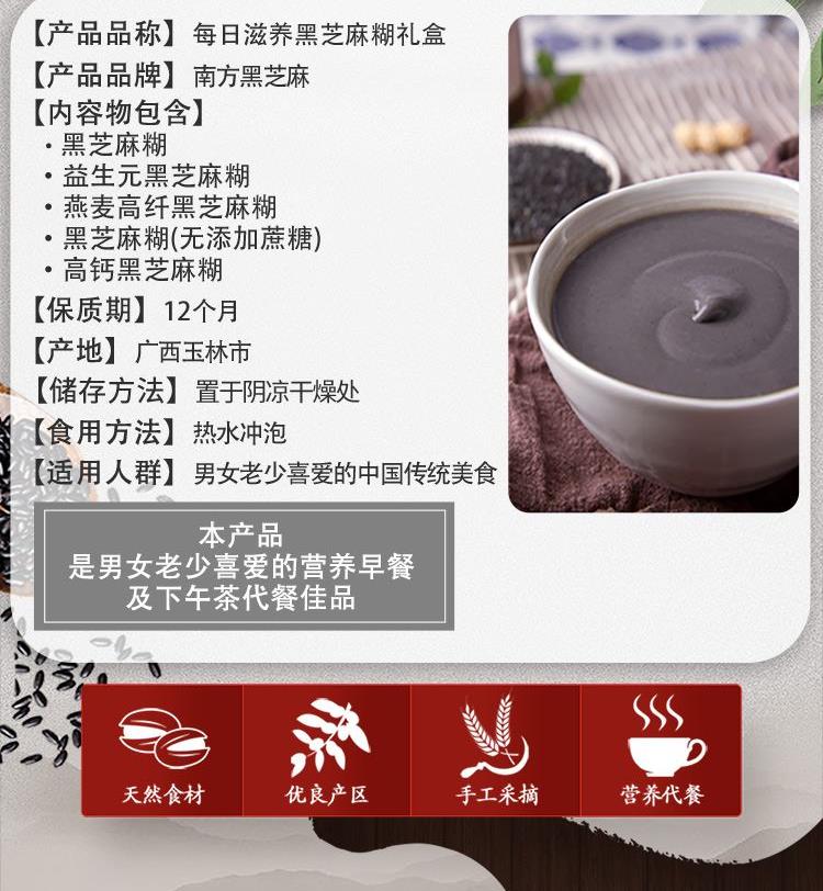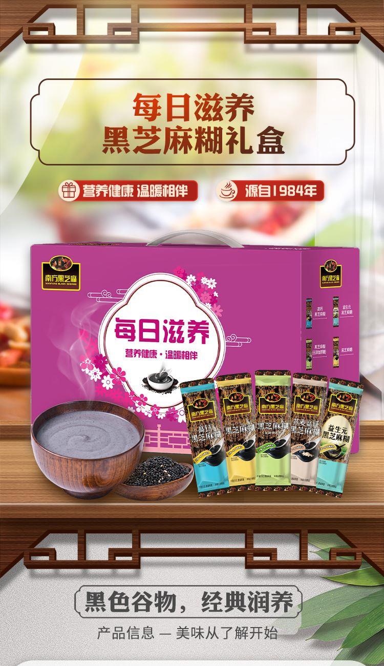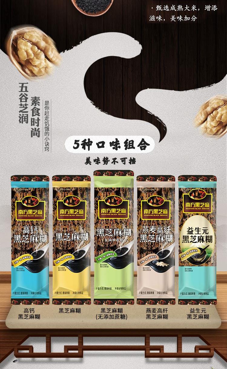 原味黑芝麻糊*3包 无添加蔗糖黑芝麻糊*3包 高钙黑芝麻糊*3包 益生元黑芝麻糊*3包 燕麦高纤黑芝麻糊*3包
