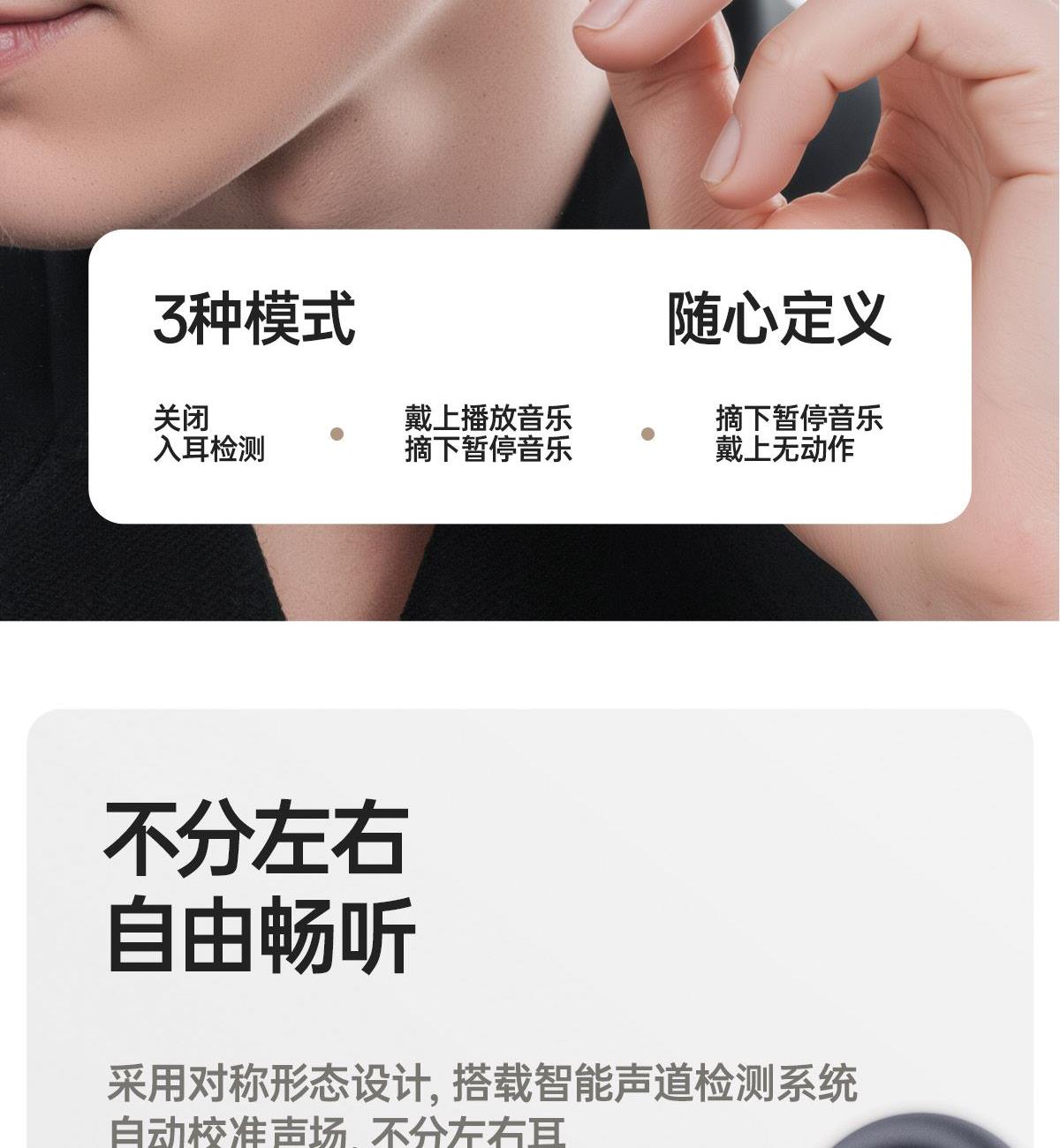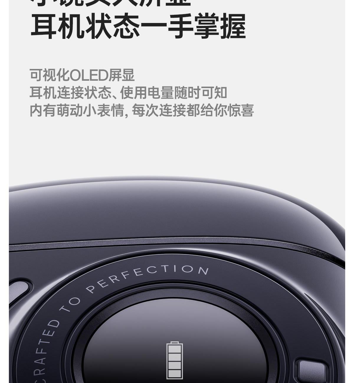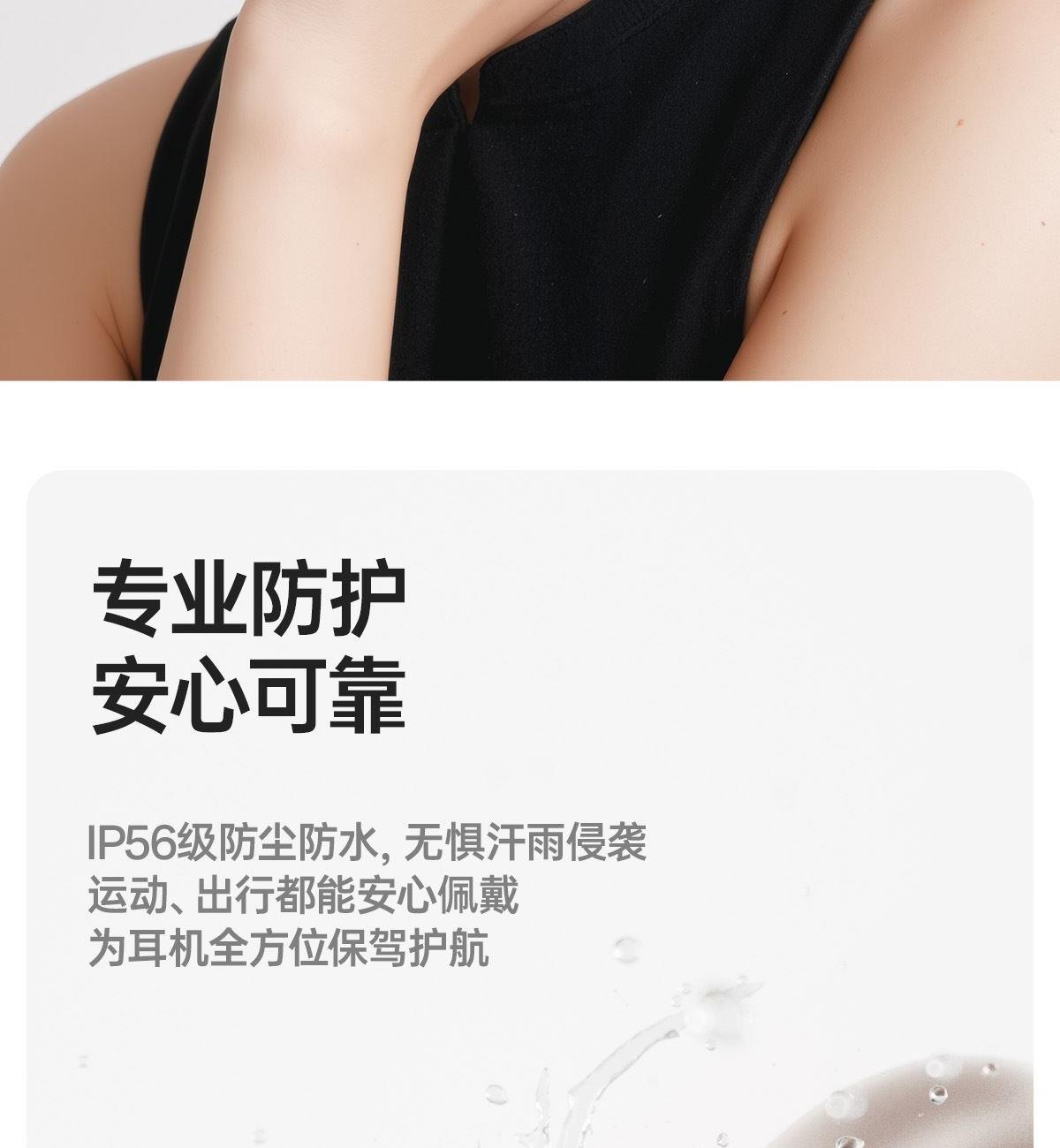 开放式佩戴 不夹耳 11mm镀钛复合振膜单元 BassTurbo动态低频增强 DPW定向声波传音 时尚OLED屏显 智能入耳检测 多种EQ音乐风格可选 智能声道检测 不分左右耳 IP56级防尘防水