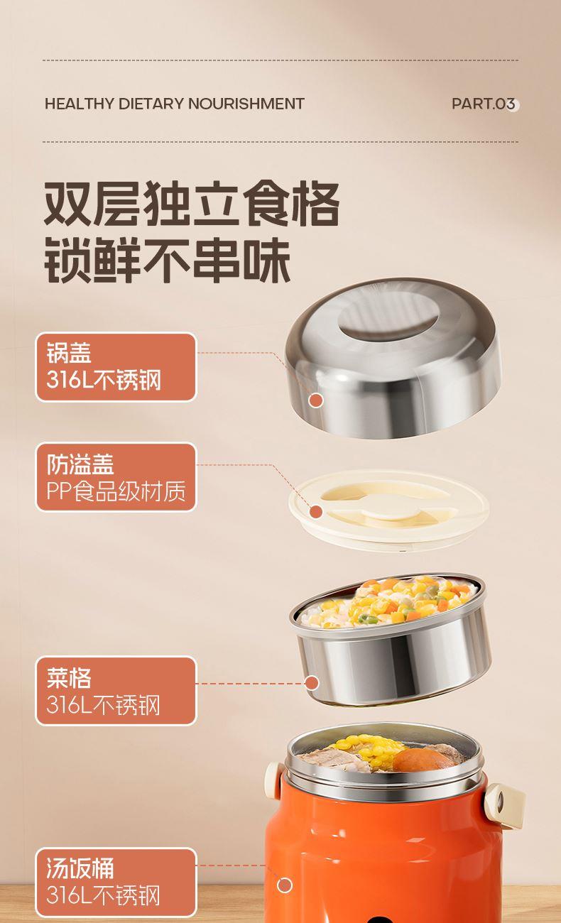 产品组合:12小时保温提锅 产品规格:1500ml 13.5*17cm 材 质:316不锈钢 包 装:OPP