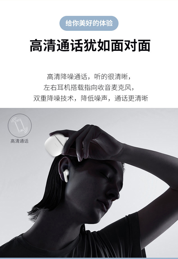 3:高清通话犹如面对面,左右耳机搭载指向收音麦克风,双重降噪技术,降低噪音,通话更清晰