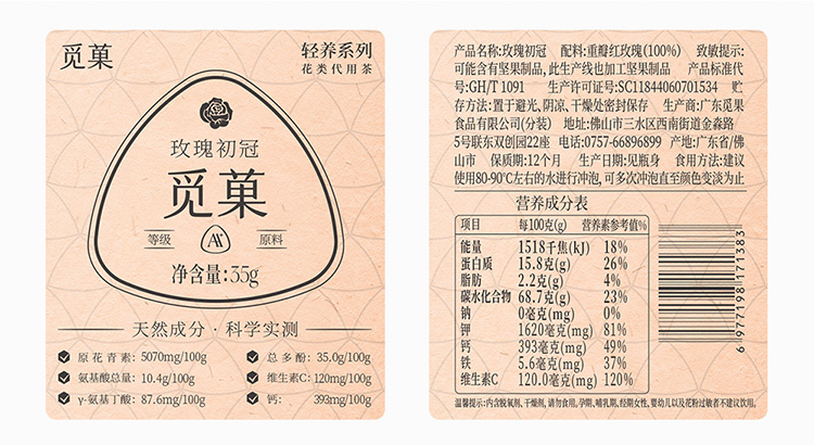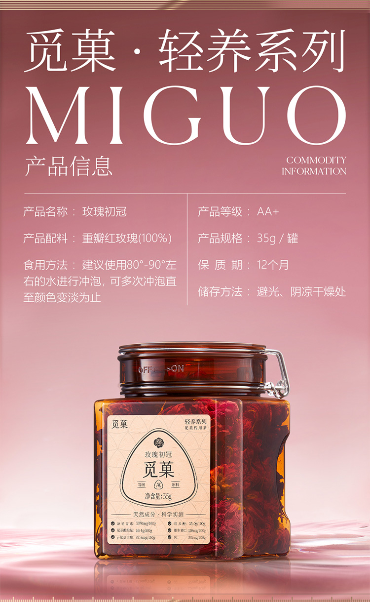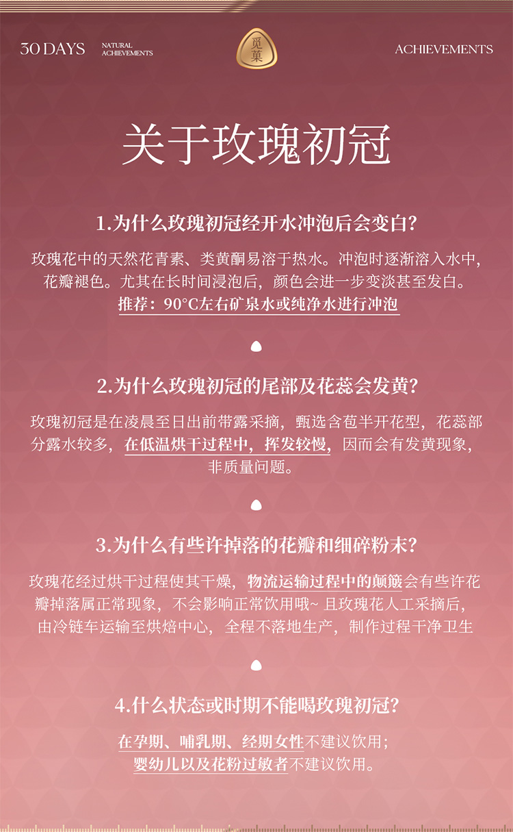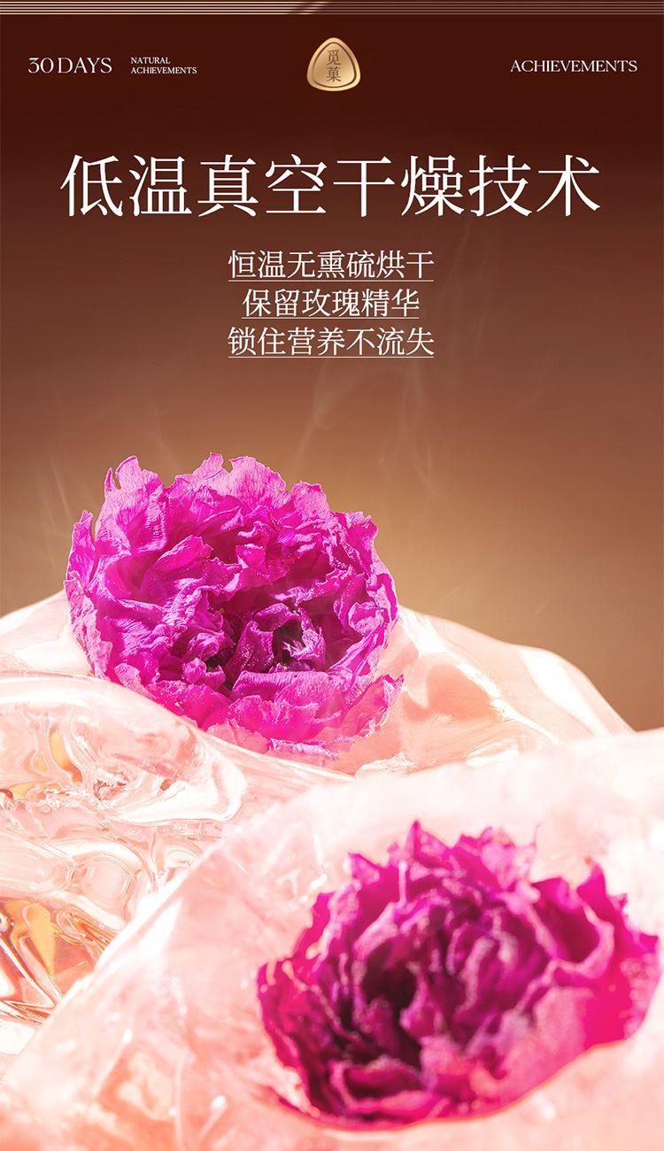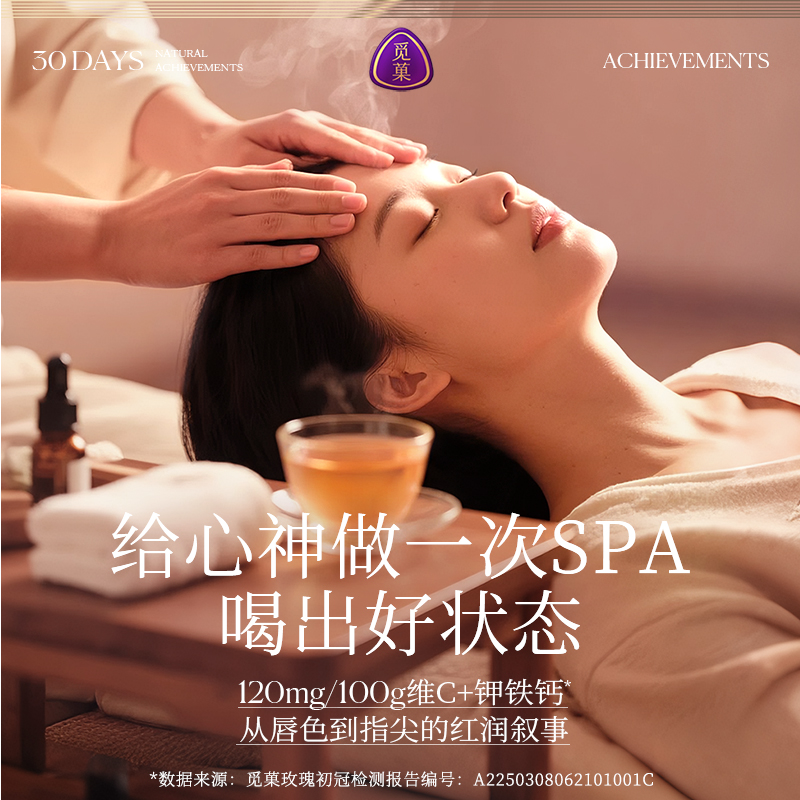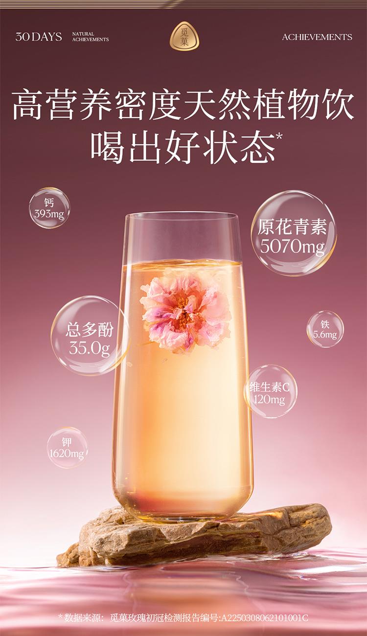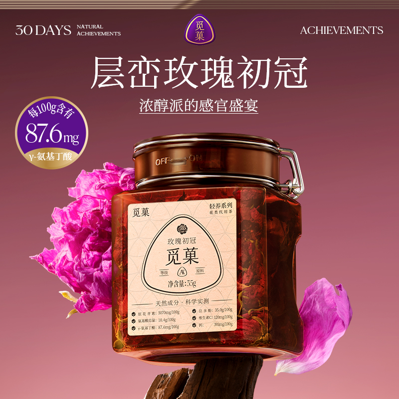 玫瑰之乡 北纬36°玫瑰圣地 可追溯至1200年前 中国玫瑰之乡--山东平阴 药典指定道地产区 舒缓身心 每100g含87.6mg y-氨基丁酸 舒缓身心 轻拥深度睡眠 焕亮肌肤 每100g含5070mg原花青素 23倍“鲜果蓝莓自由基清除力