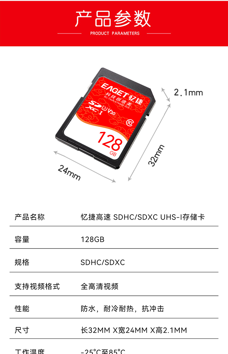 忆捷S10高速SDHC/SDXCUHS-I存储卡128G