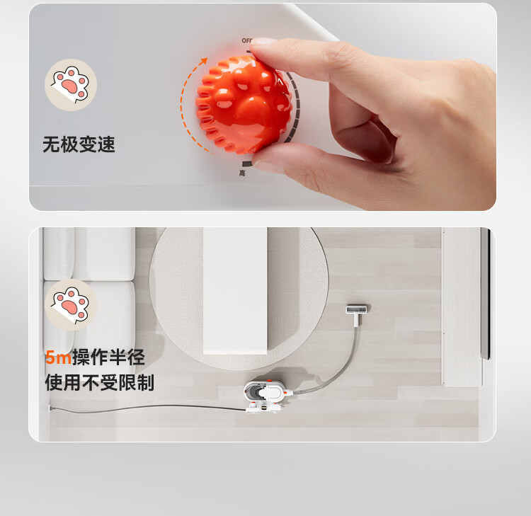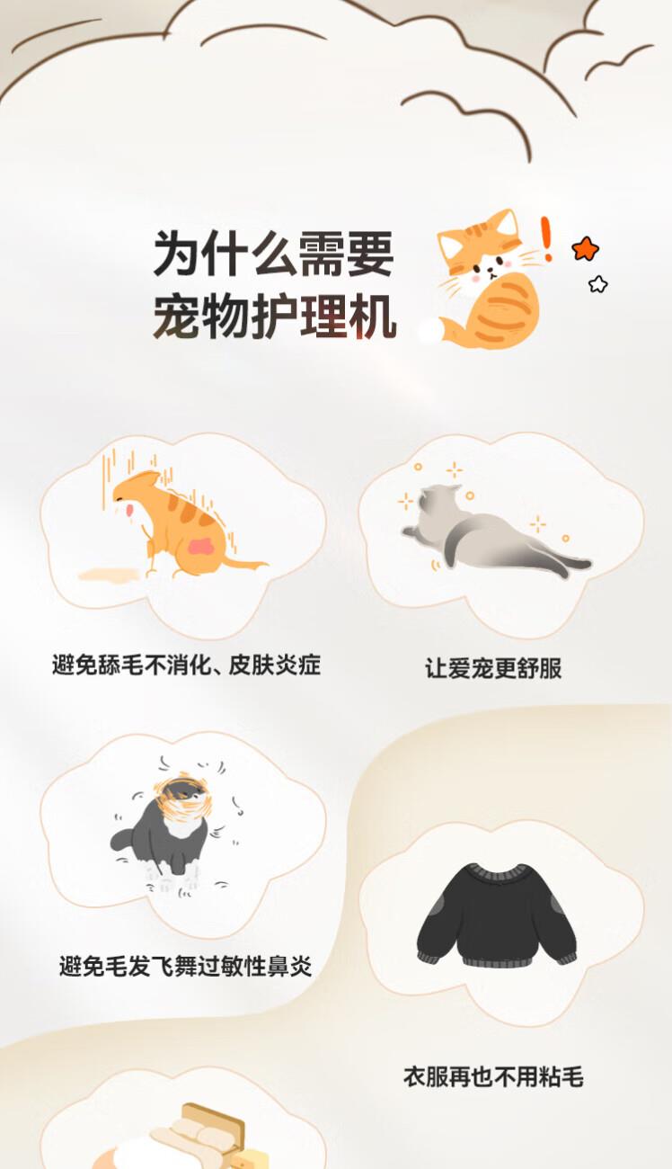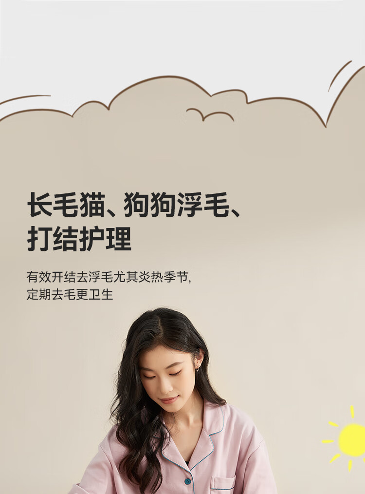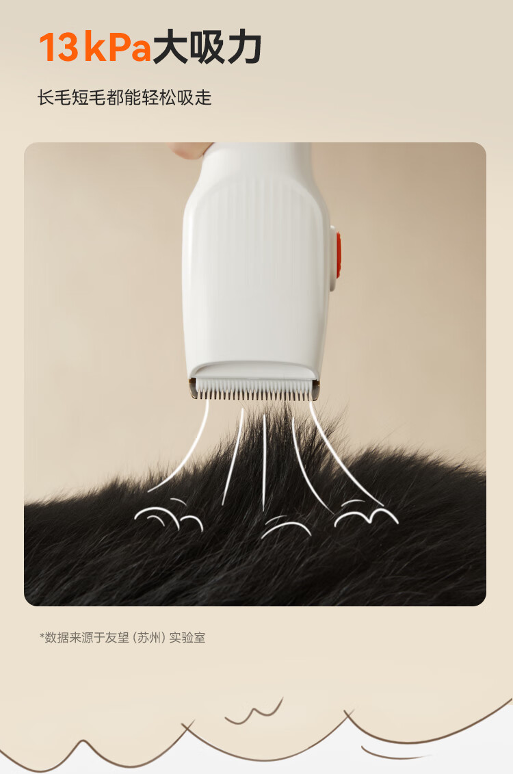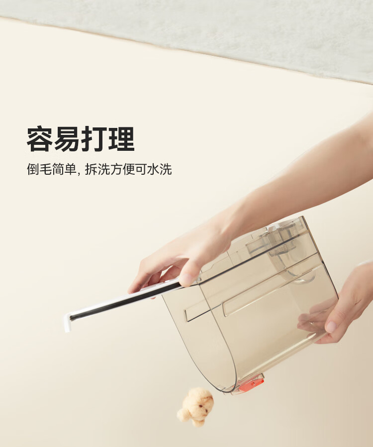额定功率:350W 整机尺寸: 331*176*252mm 整机重量:3kg(日常护理版) 整机噪音:62dB(A)~67dB(A) 吸力:13kPa 集尘容量:2.5L 300根细密针、135°弯角、塑料包裹圆头按压回弹 一机可清洁衣服、沙发、床垫、地毯 13kPa大吸力,长毛短毛都能轻松吸走