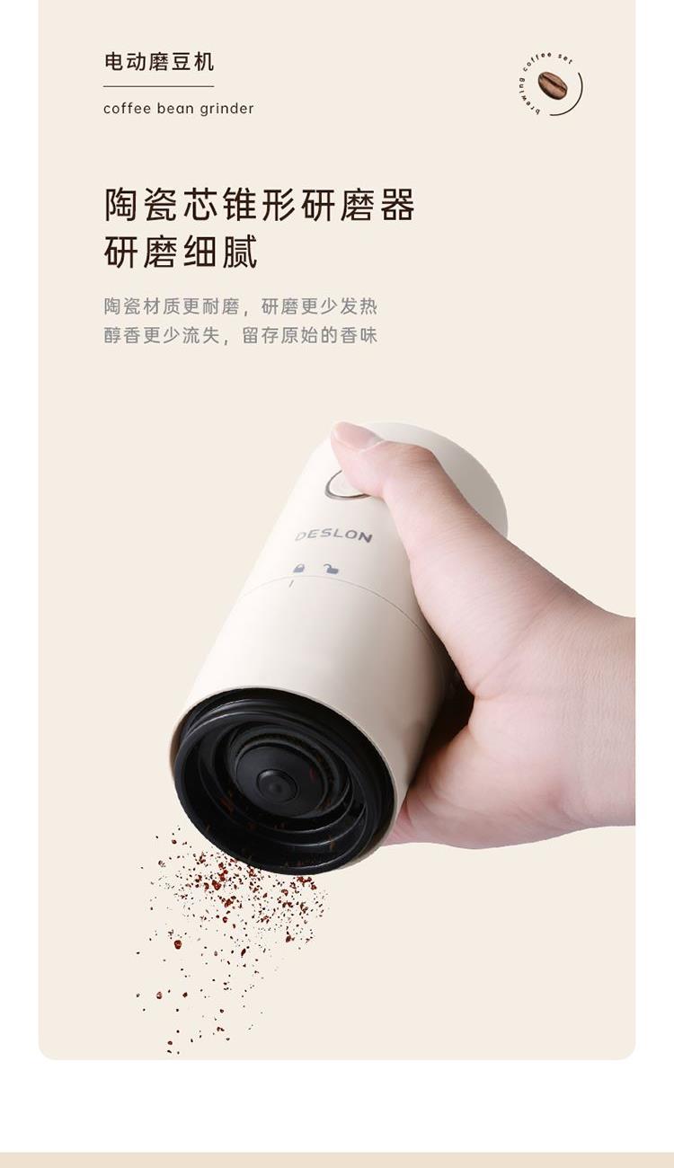 磨豆机 产品型号:DDQ-MD103 输入电压:DC5V 额定功率:13W 电池容量:1500mAh 磨芯材质:陶瓷磨芯 豆仓容量:25g 主要材质:ABS+AS 粗细调节:内置调节 摩卡壶 产品型号:DDQ-KF230 产品容量:150mL 主要材质:铝合金 咖啡勺 产品型号:DDQ-KFS01 产品材质:304不锈钢 产品尺寸:172*37mm