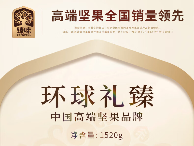 260g美国原色开心果 *1 250g格鲁吉亚开口榛子*1 230g澳洲巴旦木*1 300g夏威夷果*1 300g开口杏核*1 180g新疆核桃*1 环球礼臻,臻选全球每一颗果粒。礼盒采用传统金咖配色,烫金工艺配以反差的色彩元素 ,彰显时尚、典雅的风格、净含量:1520g,内配6种坚果,纯坚果礼盒;内配丰富齐全