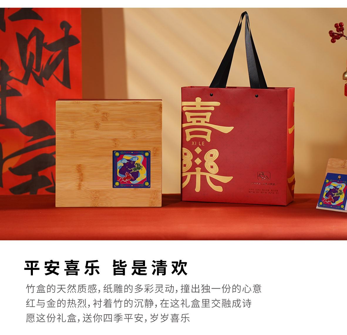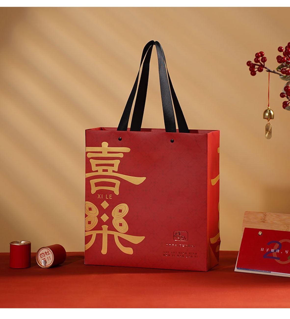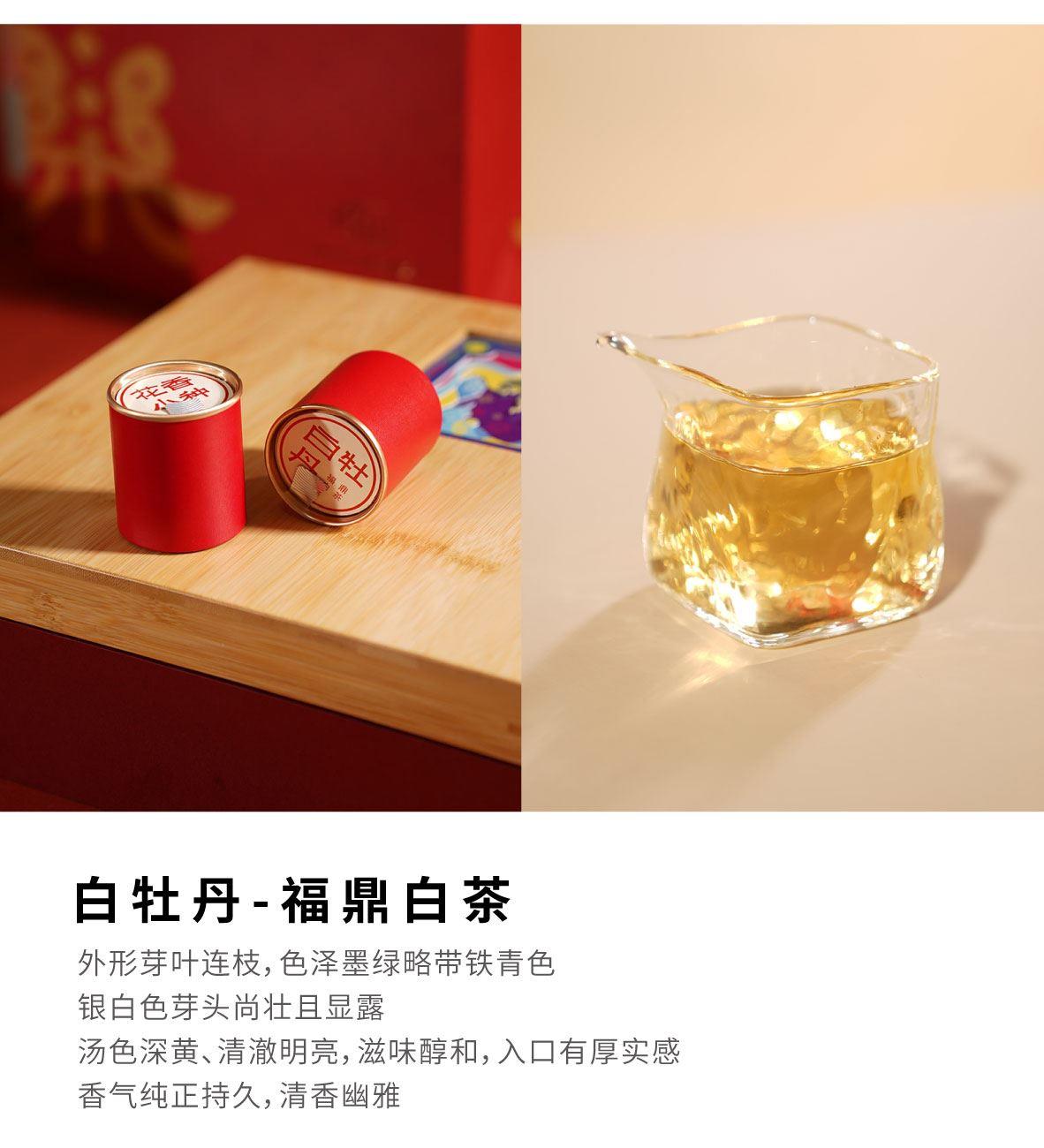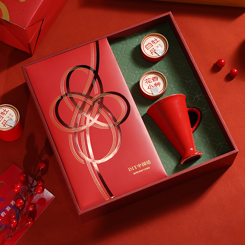 产品尺寸: 礼盒:280*280*100mm 手提袋:290*110*310mm 鸿运杯:口径74mm,高度108mm 棉 绳:1.8m 茶叶罐:48*48*55mm 茶叶总净含量:10g 产品配置: 日历x1,鸿运杯x1, 福鼎白茶x1,花香小种x1, DIY中国结材料包x1,手提袋x1