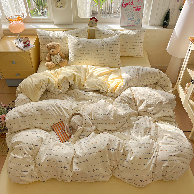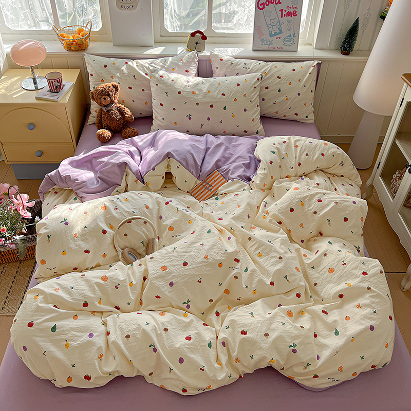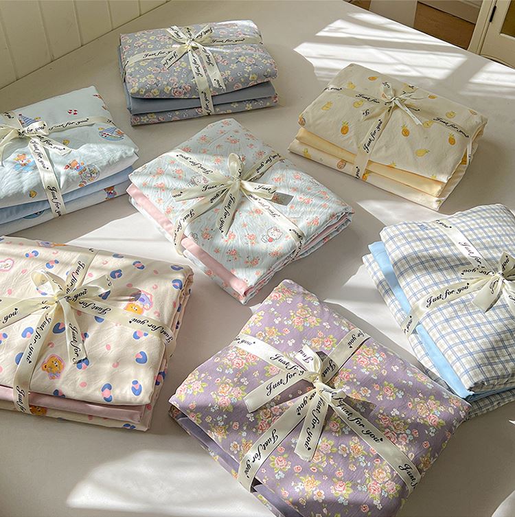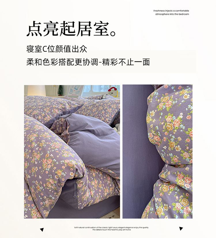 花花公子-家纺-古法水洗棉小清新印花四件套
