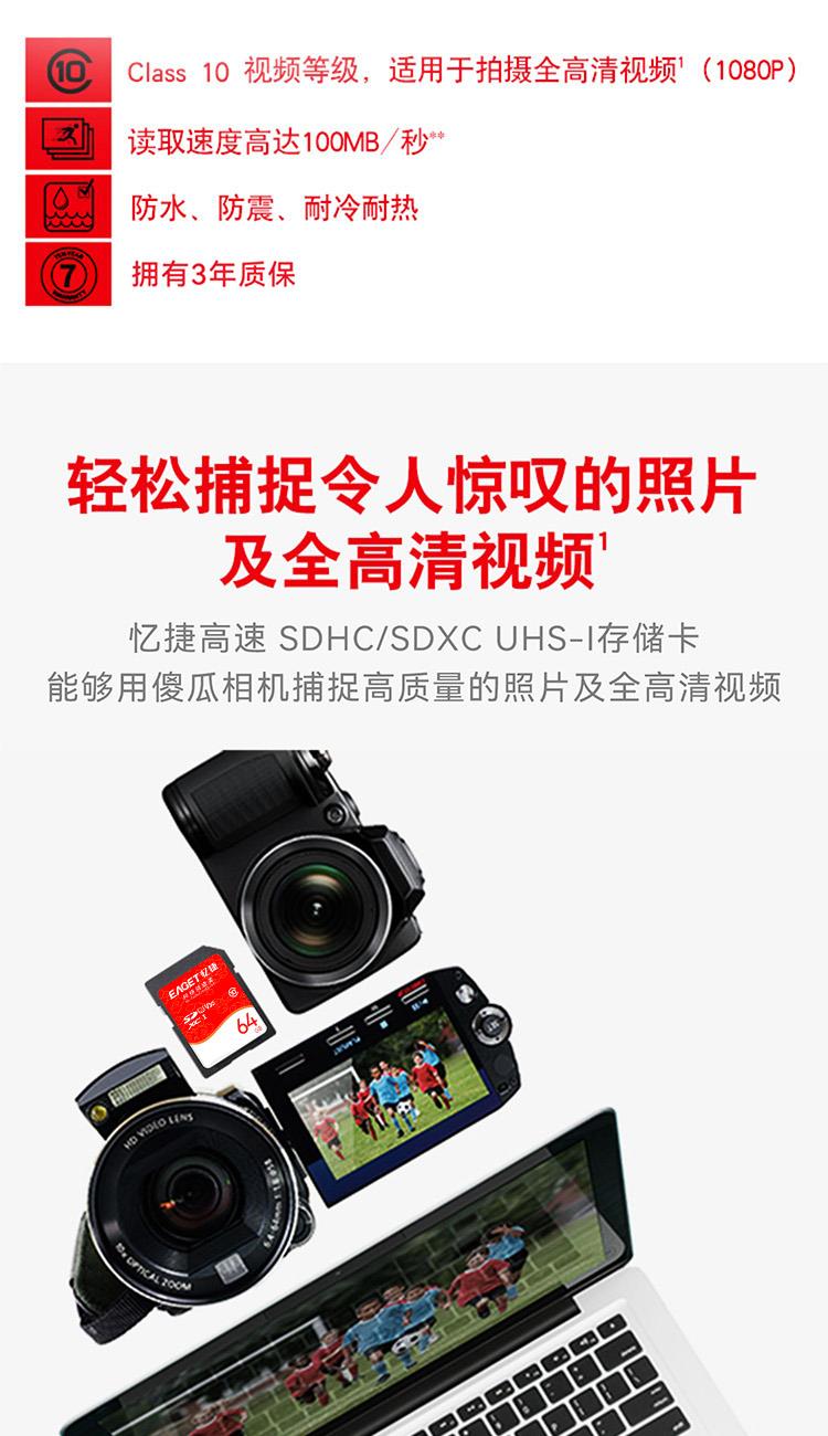 忆捷S10高速SDHC/SDXCUHS-I存储卡64G