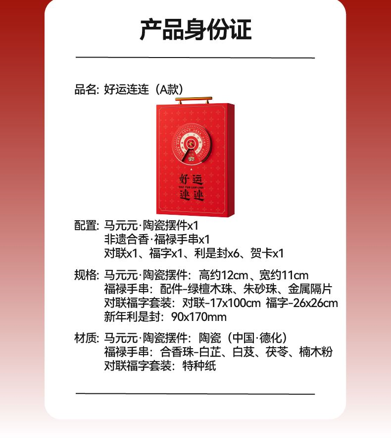 精装提盒 x1、 马元元·陶瓷摆件x1、非遗合香·福禄手串x1