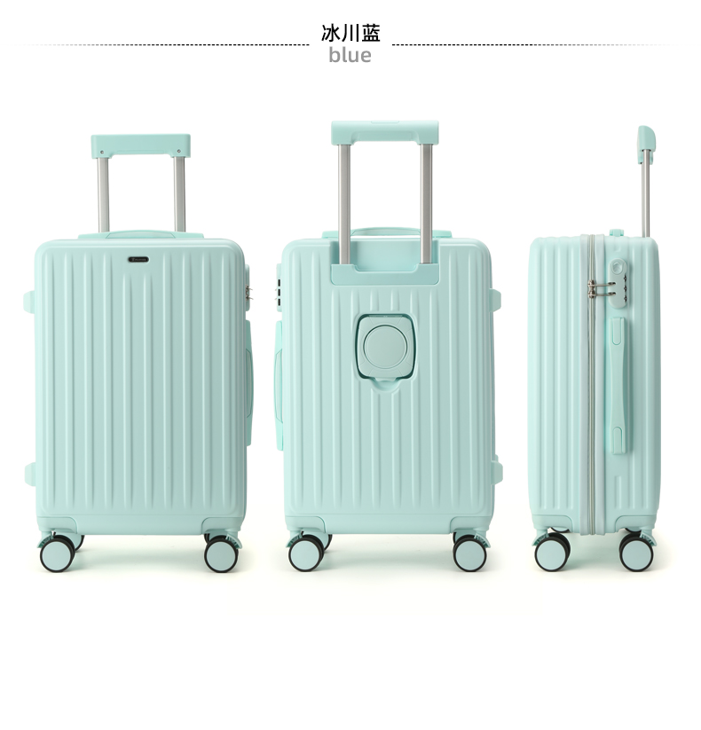 外部材质:ABS 内部材质:涤纶 产品规格:56.5*37.5*22.5CM 重量:3.45kg 瓦楞纸箱 1.ABS材质 2.手机机架 3.侧边挂勾 4.水杯位 5.三位数密码锁 6.万向轻音轮"