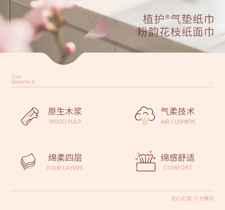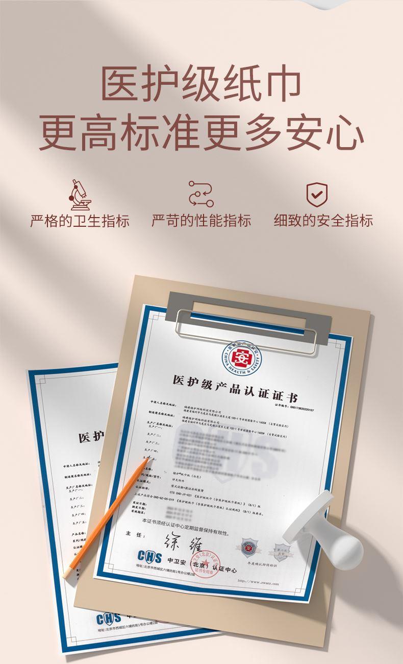 长短纤维物理方式科学配比颠覆传统纸巾手感柔触感升级,柔上加柔造出绵韧的亲肤触感;4、遇水柔韧 擦拭无屑