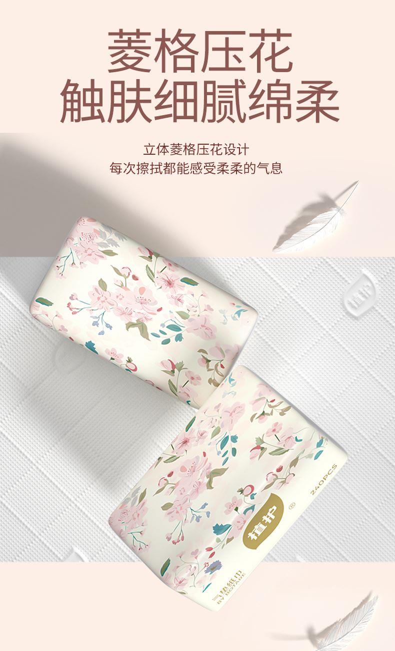 植护·粉韵花枝纸面巾118*175mm4层60抽*30包/箱