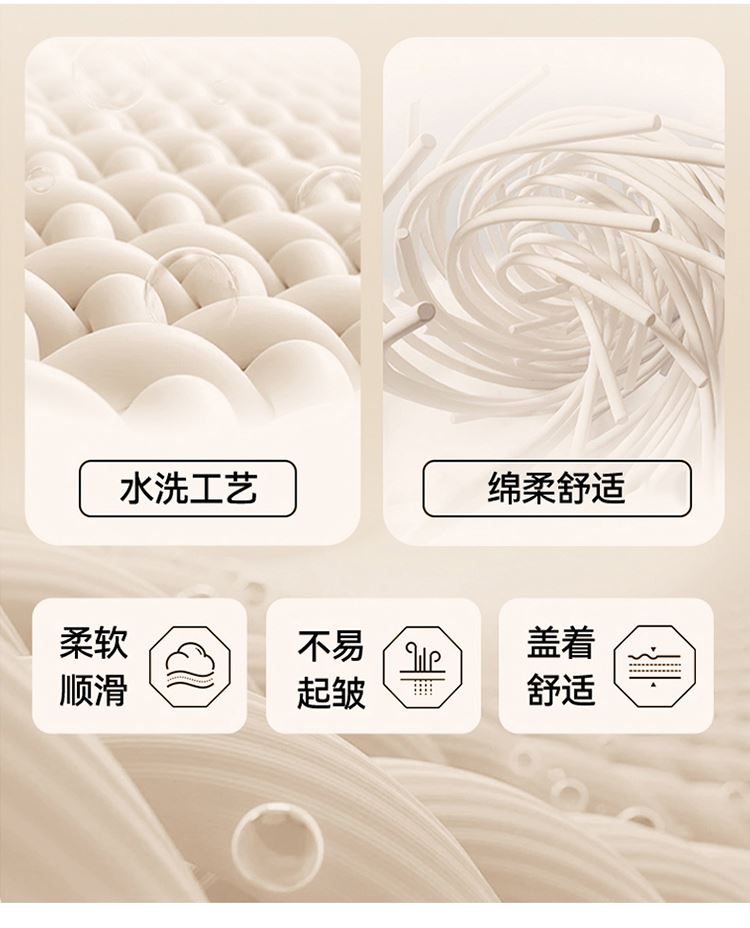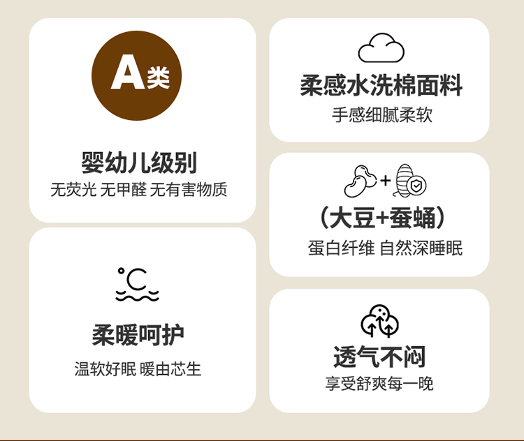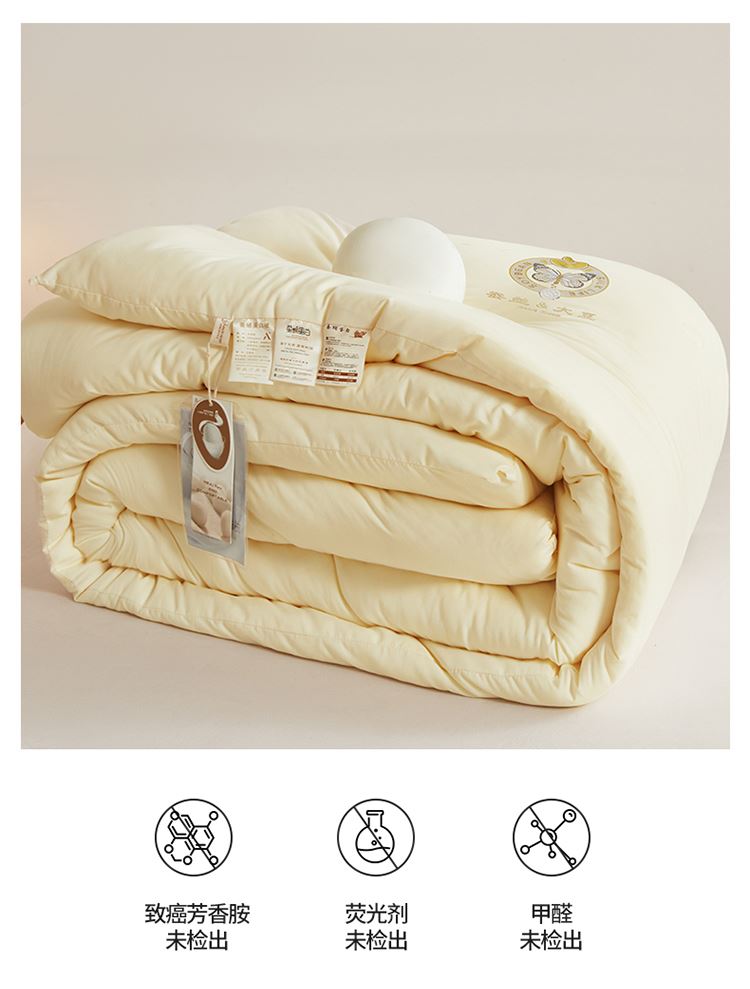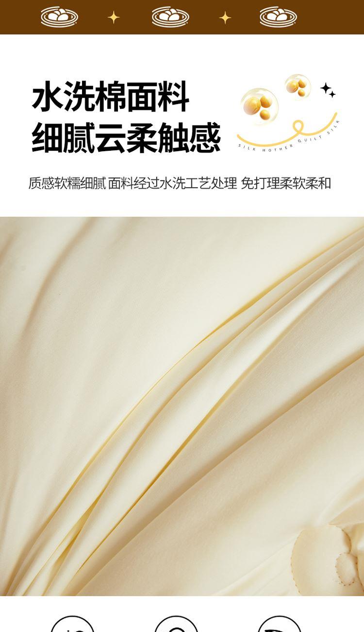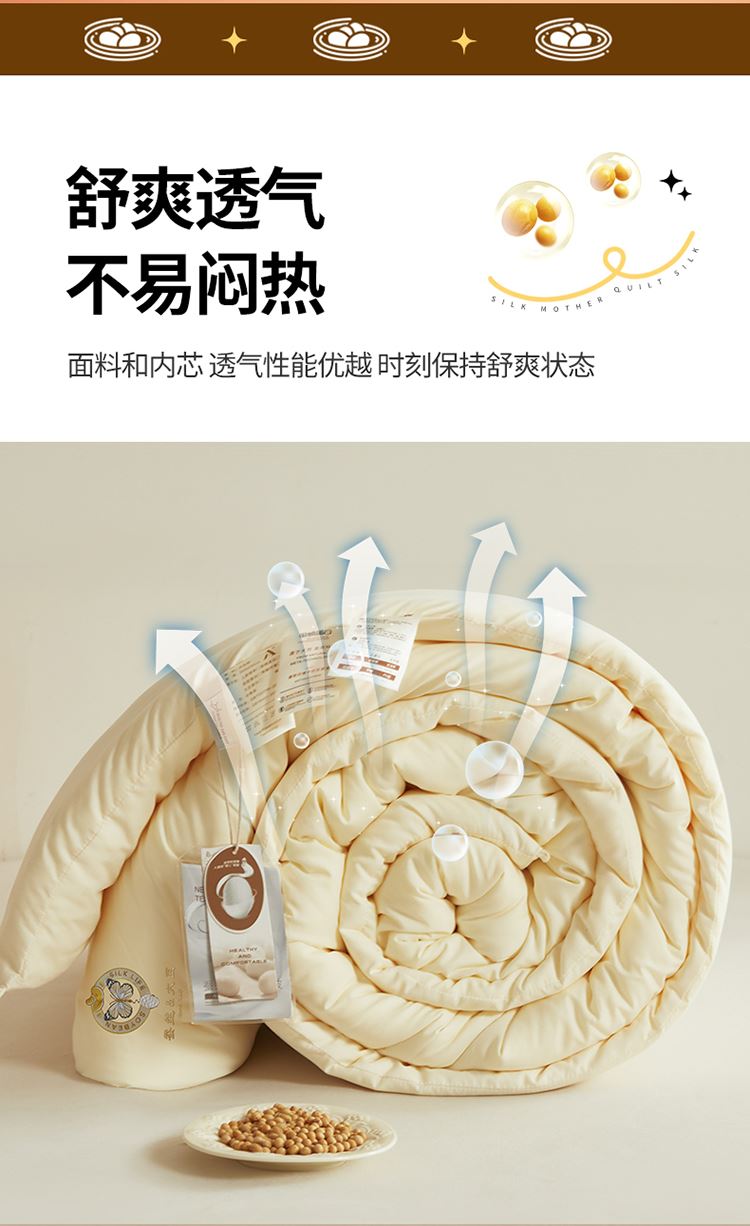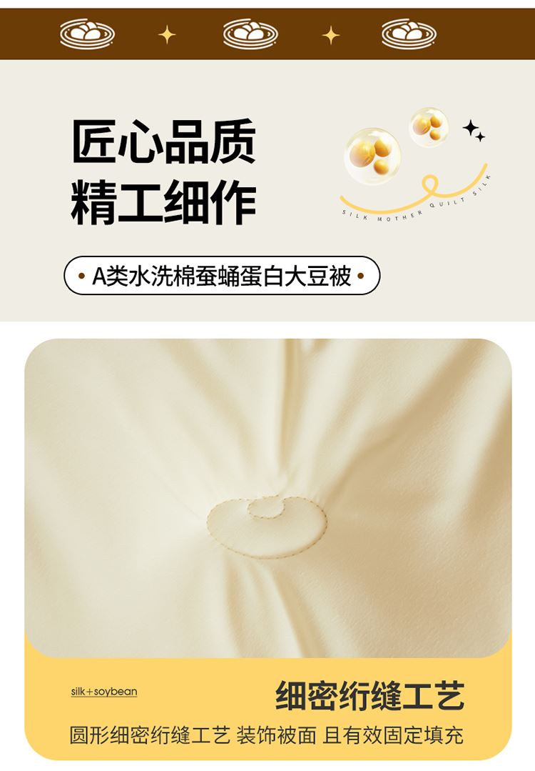 1:蚕丝大豆被为美梦呈上配方 水洗棉蚕蛹蛋白大豆被 2:睡出健康 活力满满 双蛋白填充 滋养肌肤 柔暖呵护每晚好眠 3:水洗棉面料细腻云柔触感 质感软糯细腻 面料经过水洗工艺处理 免打理柔软柔和 尺寸:200x230cm 重量:3kg 包装:礼盒/礼袋