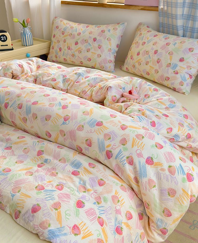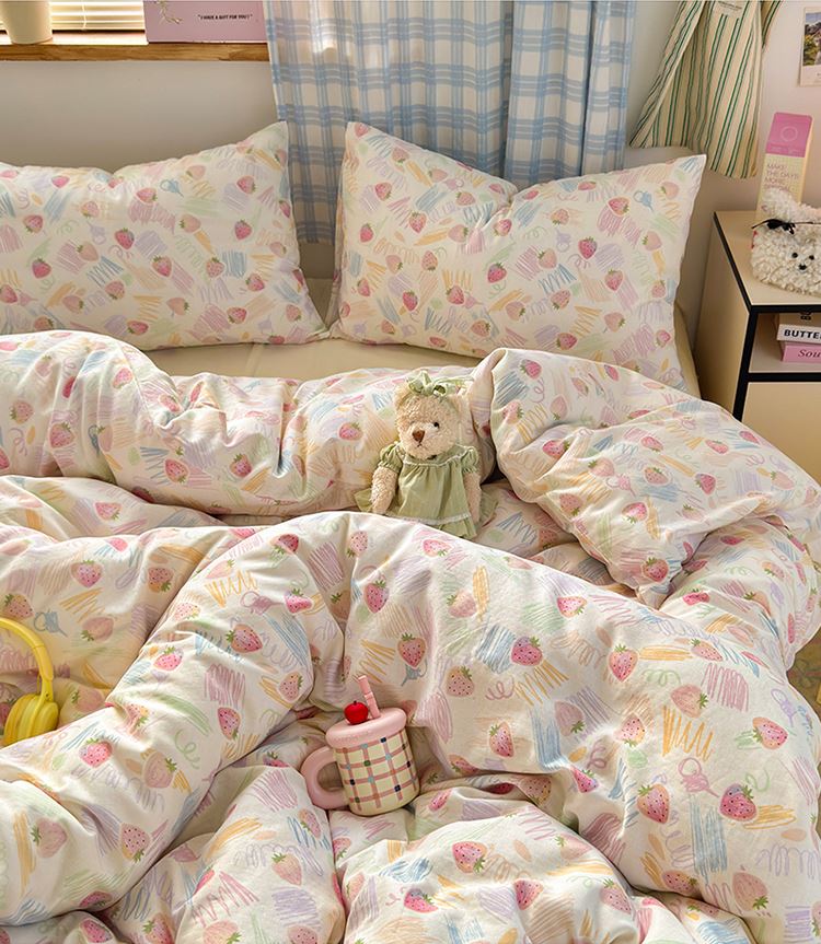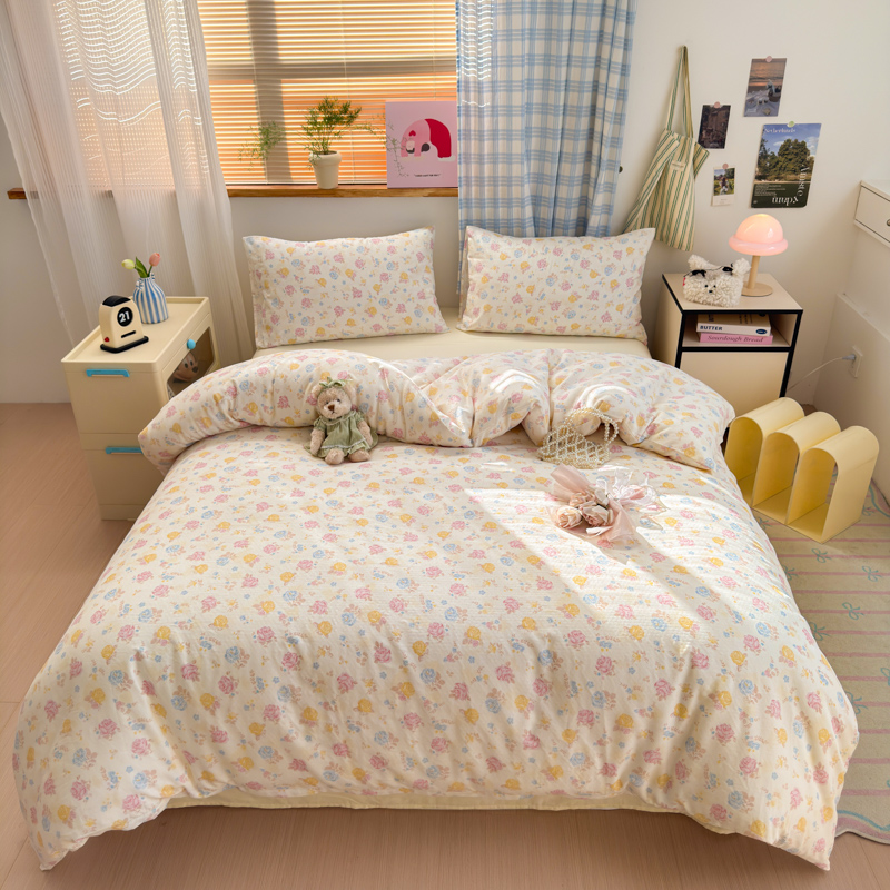 花花公子-家纺-新疆棉全棉双层纱小清新四件套-花开半夏