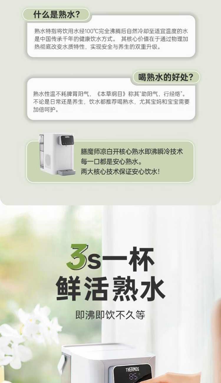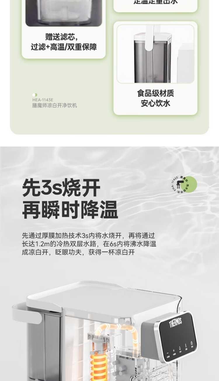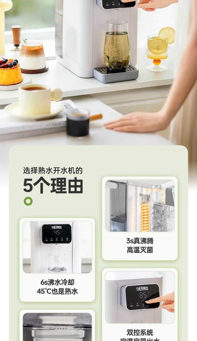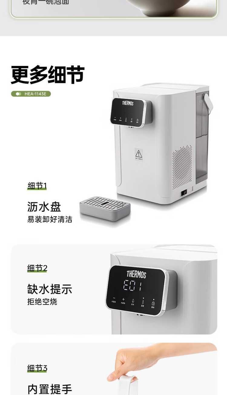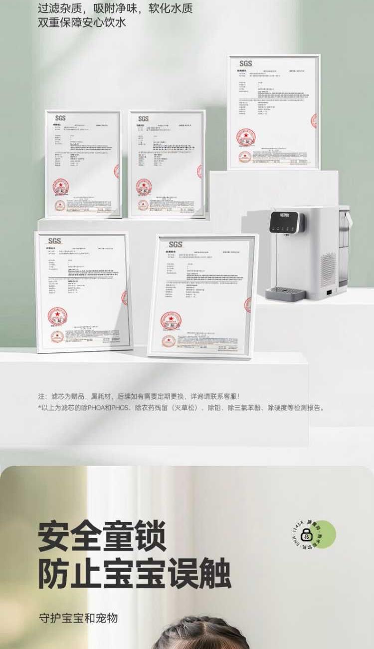 产品功率:2200W 容量:4L 操作方式 : 触屏控制 水箱 :食品级AS 五档水温:常温(水箱水直出)、45℃、65℃、85℃、98℃ 四档水量:250mL、350mL、500mL、连续(---)mL 建议水源:矿泉水、纯净水、蒸馏水 产品净重:3.5kg 毛重:4.2kg 产品尺寸:326*210*322 mm 包装尺寸:372*273*385mm 配置清单:主机,沥水盘,水箱,滤芯*1,电源线,说明书