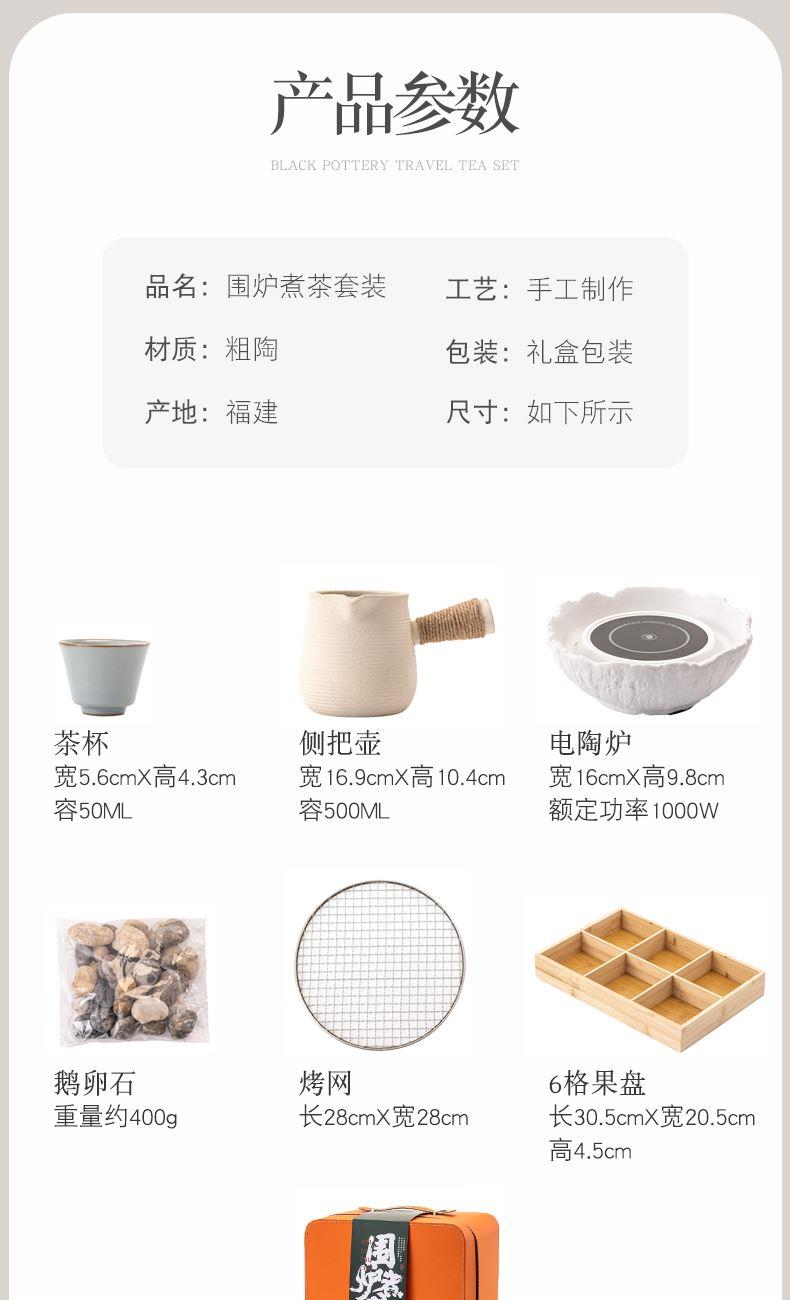 炉子:16*9.8厘米1000W 壶:16.9*10.4厘米500ml 品茗杯:5.6*4.3厘米50ml 旅行包:31*25*31厘米 精挑原料细筛瓷土, 千度煅烧高温成瓷,天然矿物釉,高温烧制无铅镉 ,搭配礼盒包装,自用赠礼两宜.