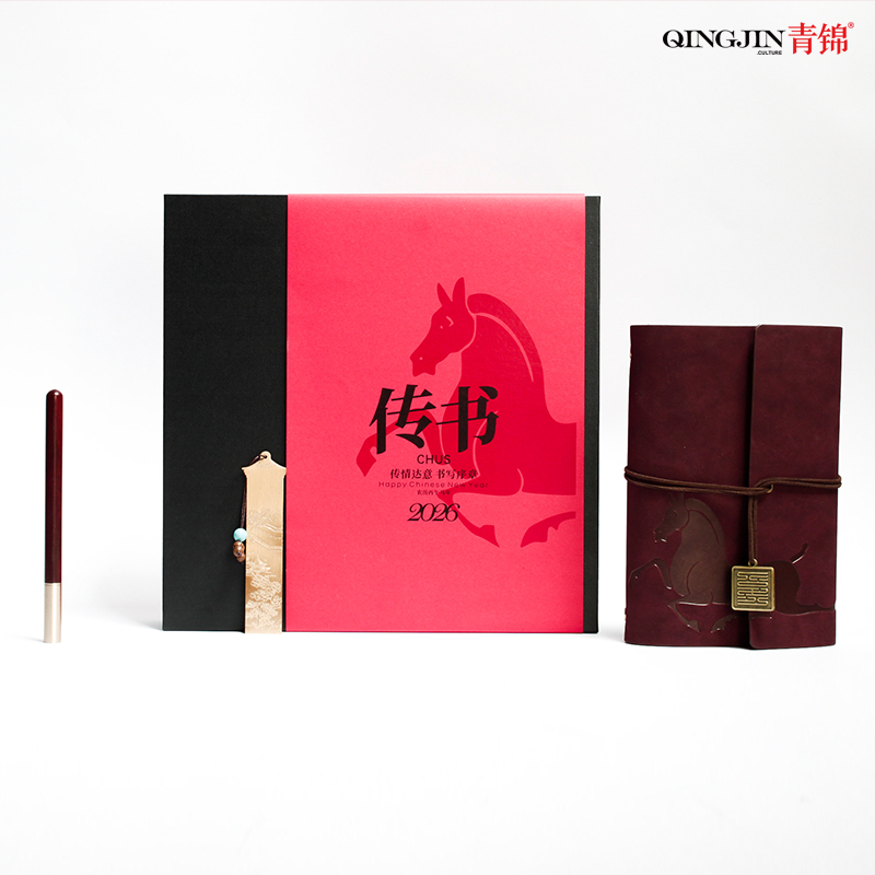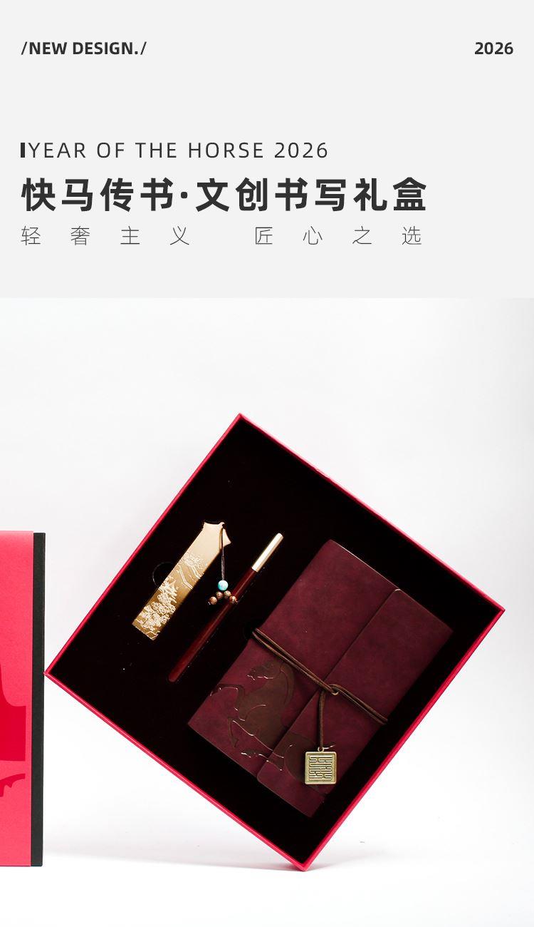 青锦2026【快马传书2.0】活页记事本实木签字笔书签文创礼