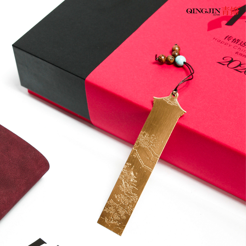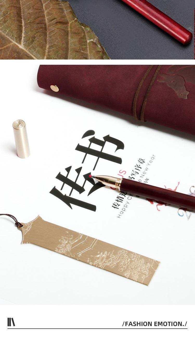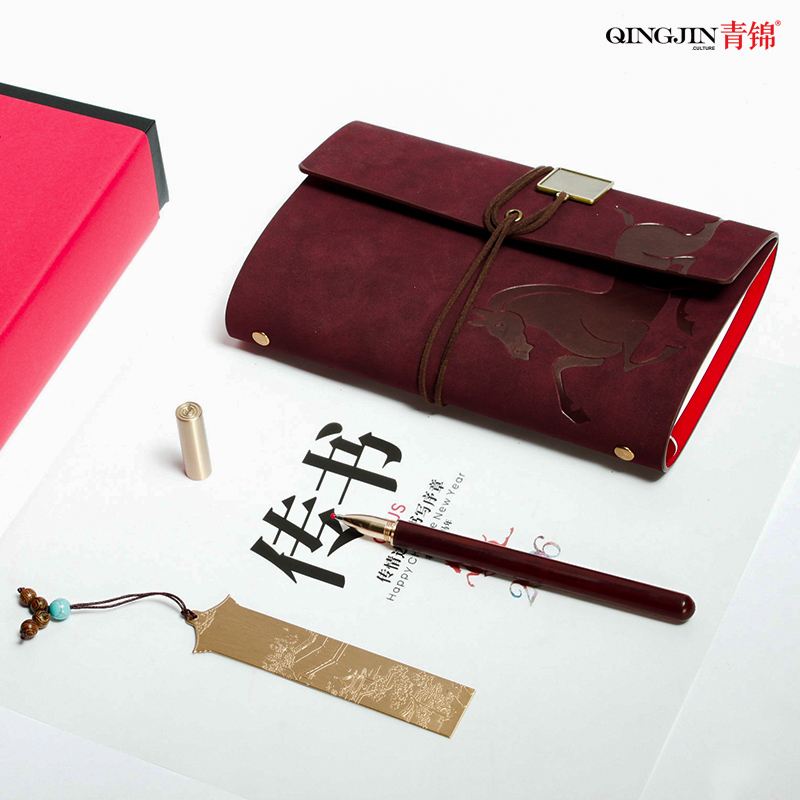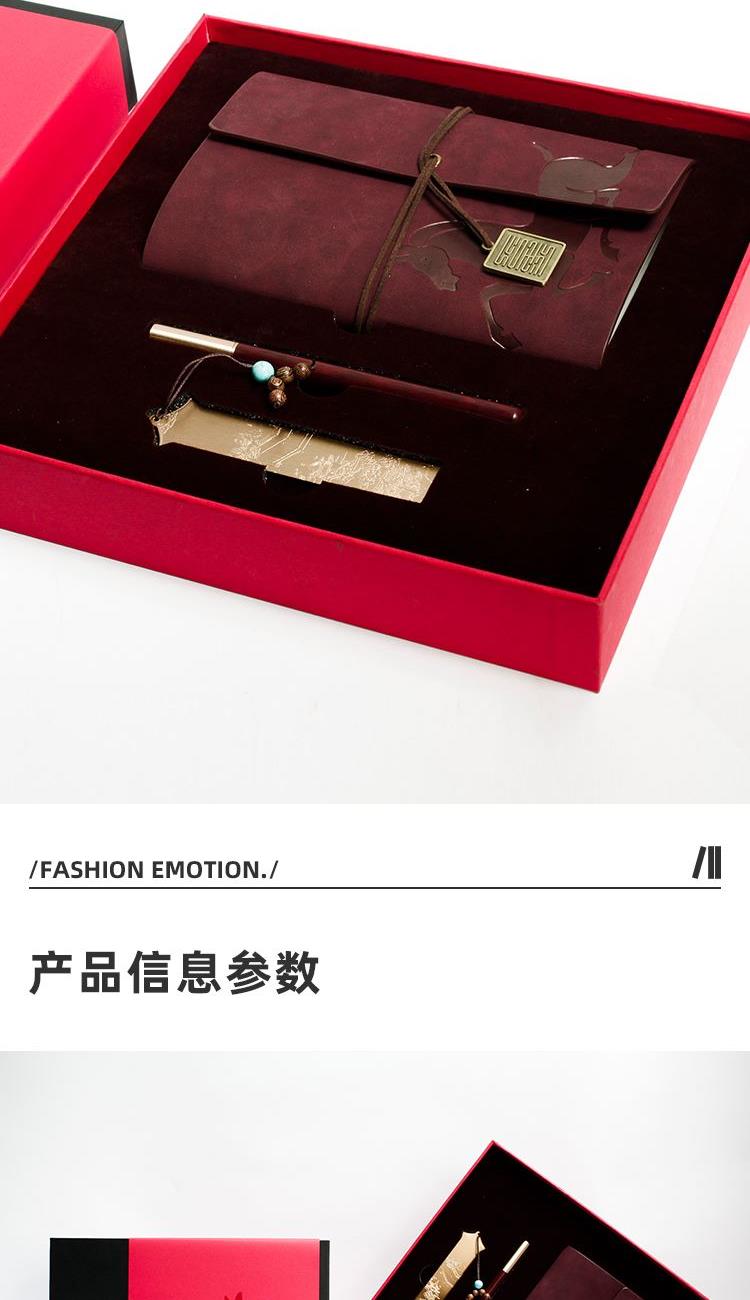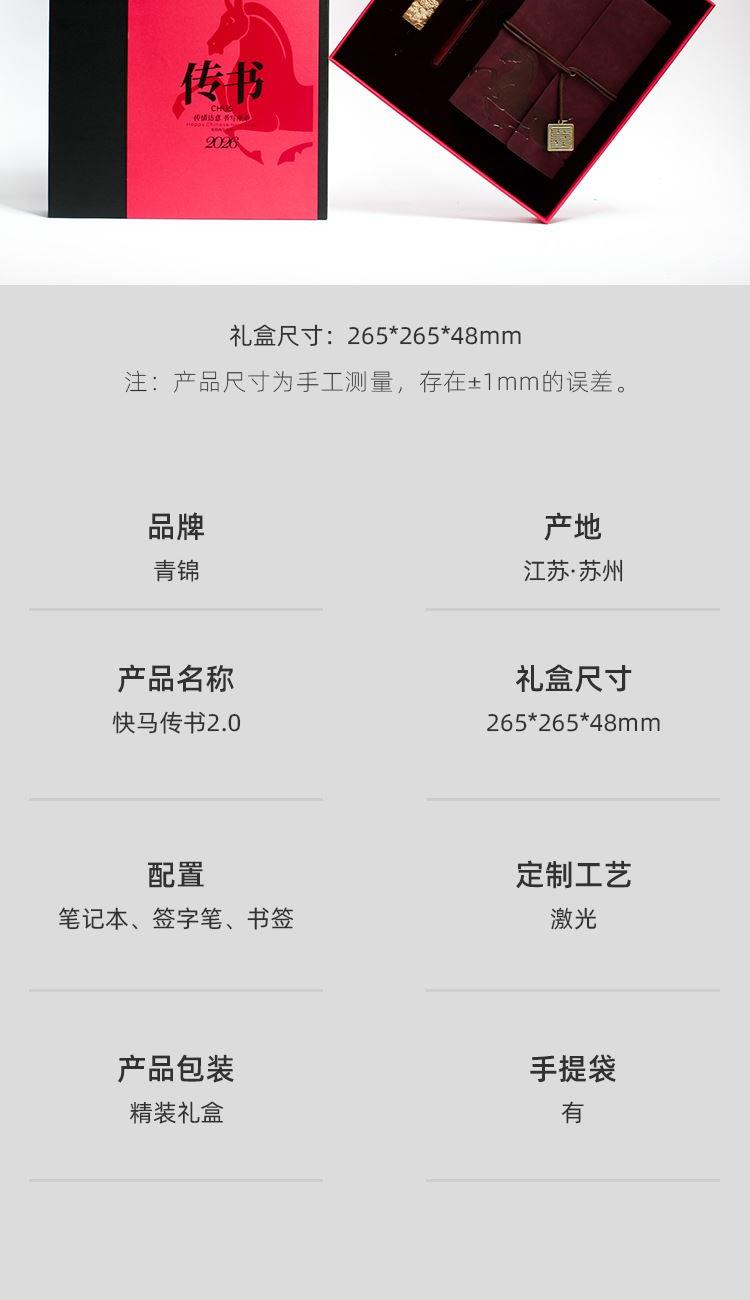 配置 赤兔记事本*1书友签字笔黄铜古邑书签*1 精装礼盒*1 手提袋*1 材质 笔记本 变色皮革千越象牙白纸100克80张 签字笔 科檀木/黄铜 古邑书签锌合金镀金 定制工艺:激光 镭射 印刷烫印 尺寸 笔记本 :130*183mm;签字笔:150*10mm;书签:100*29mm;礼盒:265*265*48mm