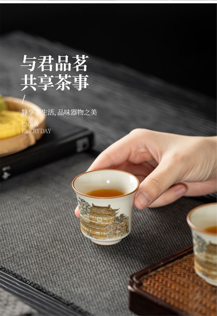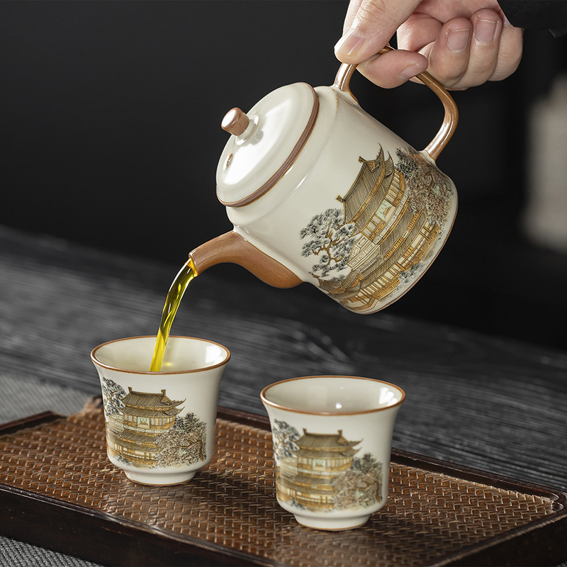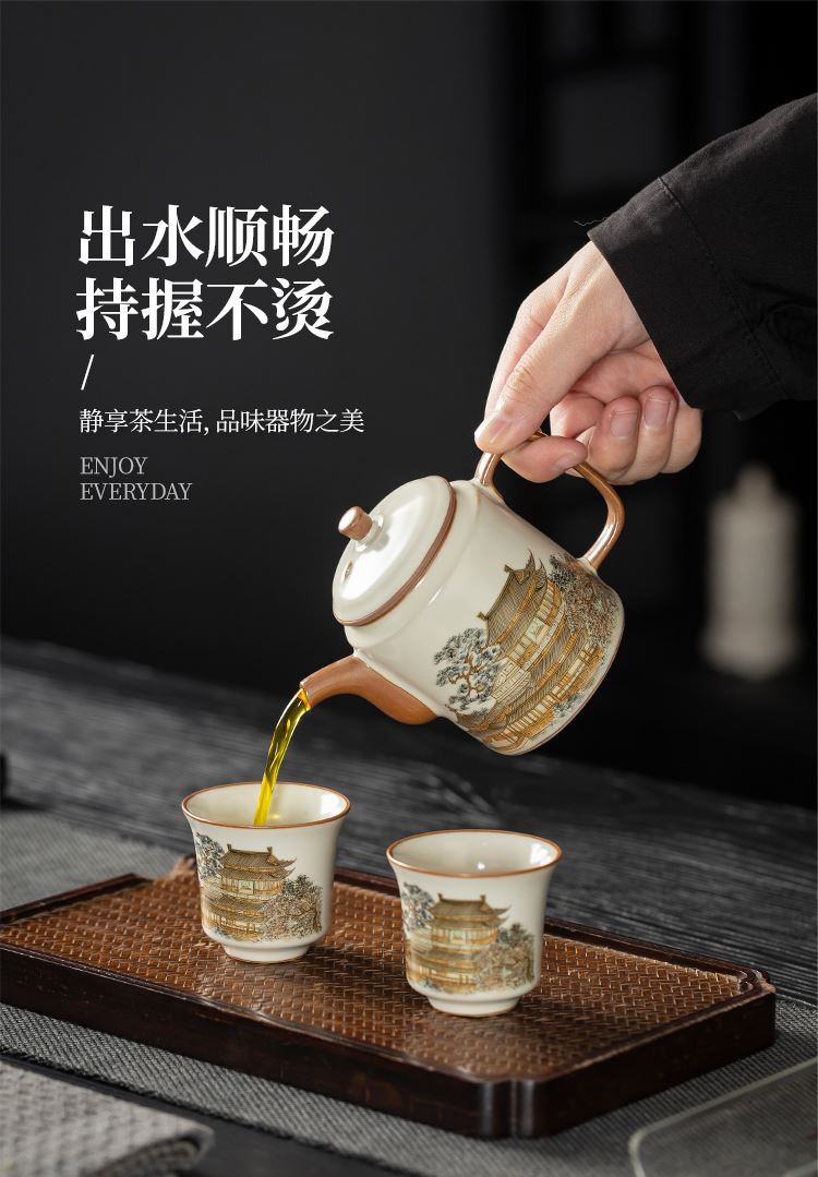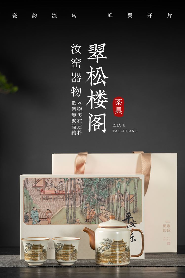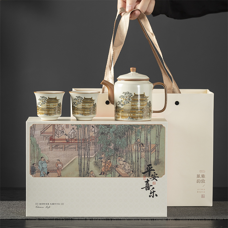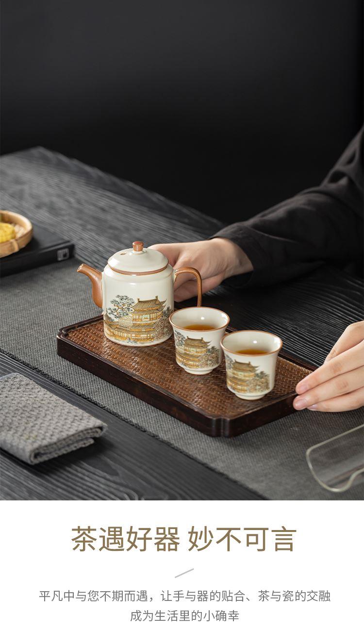 云博陶瓷黄鹤楼一壶两杯随身杯汝窑茶具中国风出行随身杯伴手礼