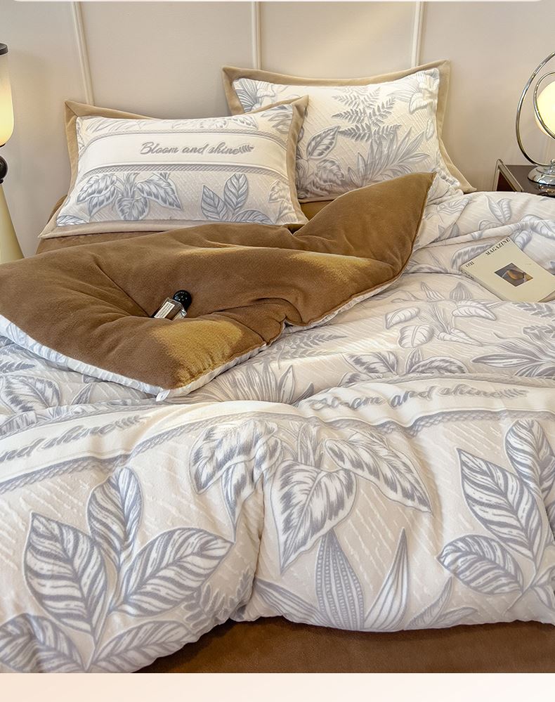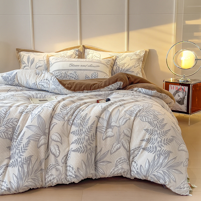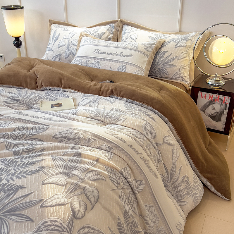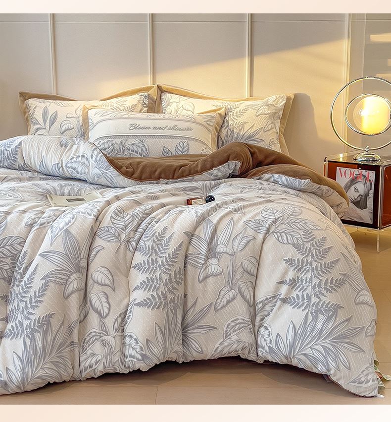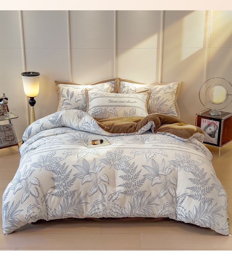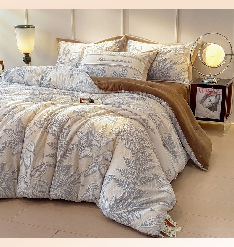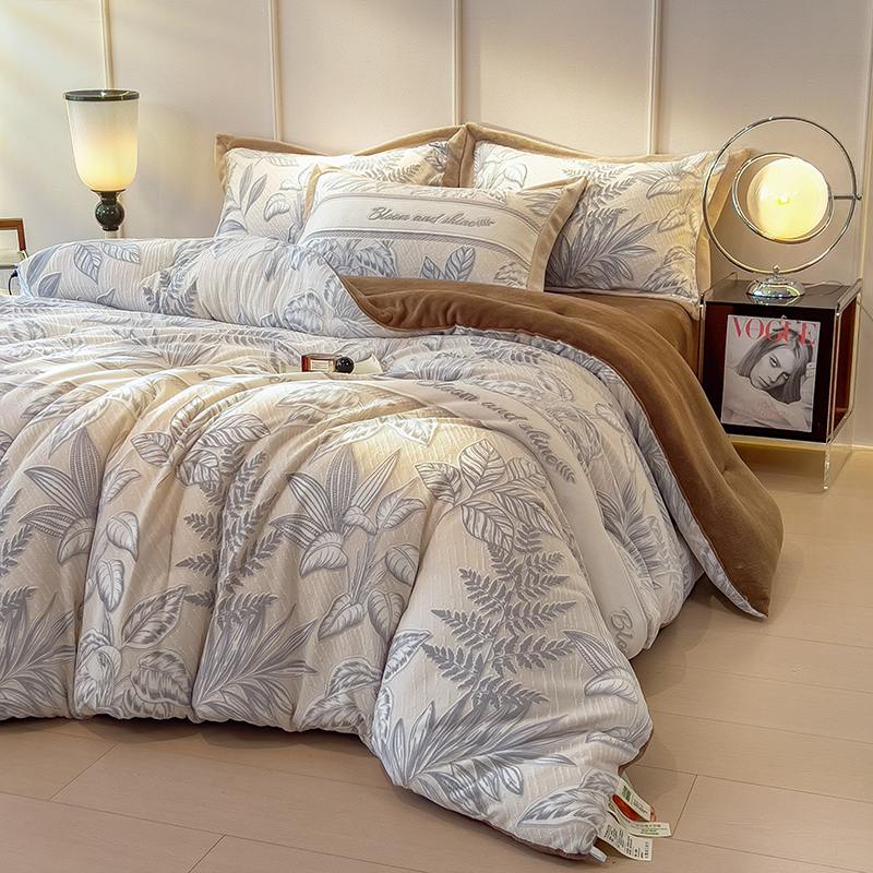 面料:牛奶绒(聚酯纤维) 填充:聚酯纤维 规格:200cm*230cm 总重量:3800g 包装:精美软包 甄选高克重提花牛奶绒面料,绒毛丰盈细腻 温暖舒适,不易掉绒,冬日无静电困扰。面料中织入导电丝纤维。告别冬日噼里啪啦困扰,温暖舒适保温。