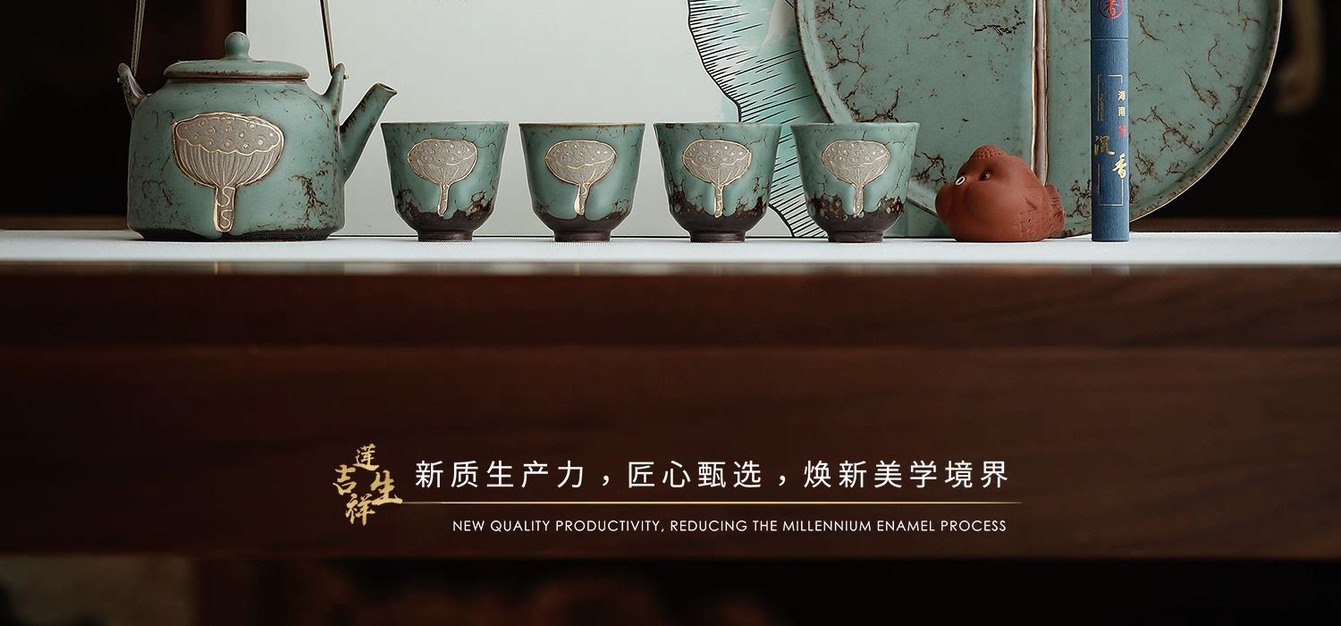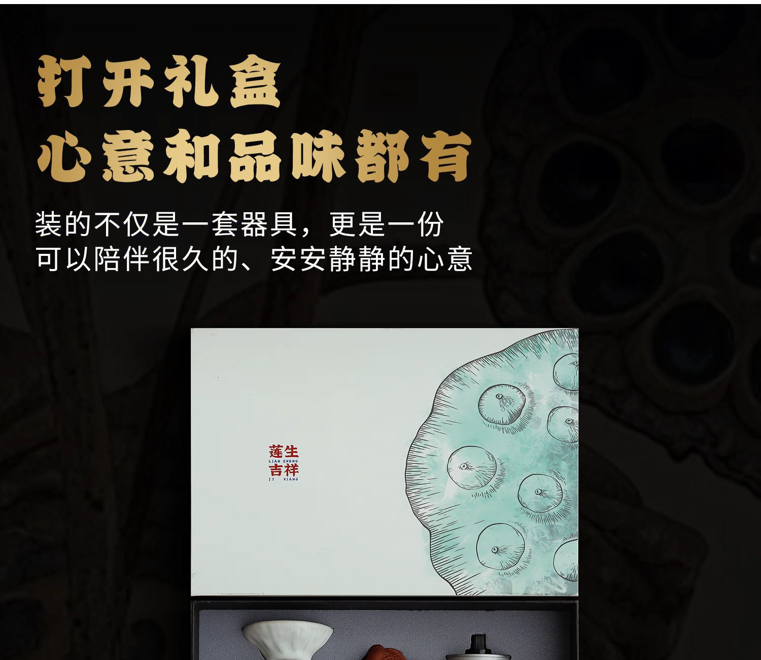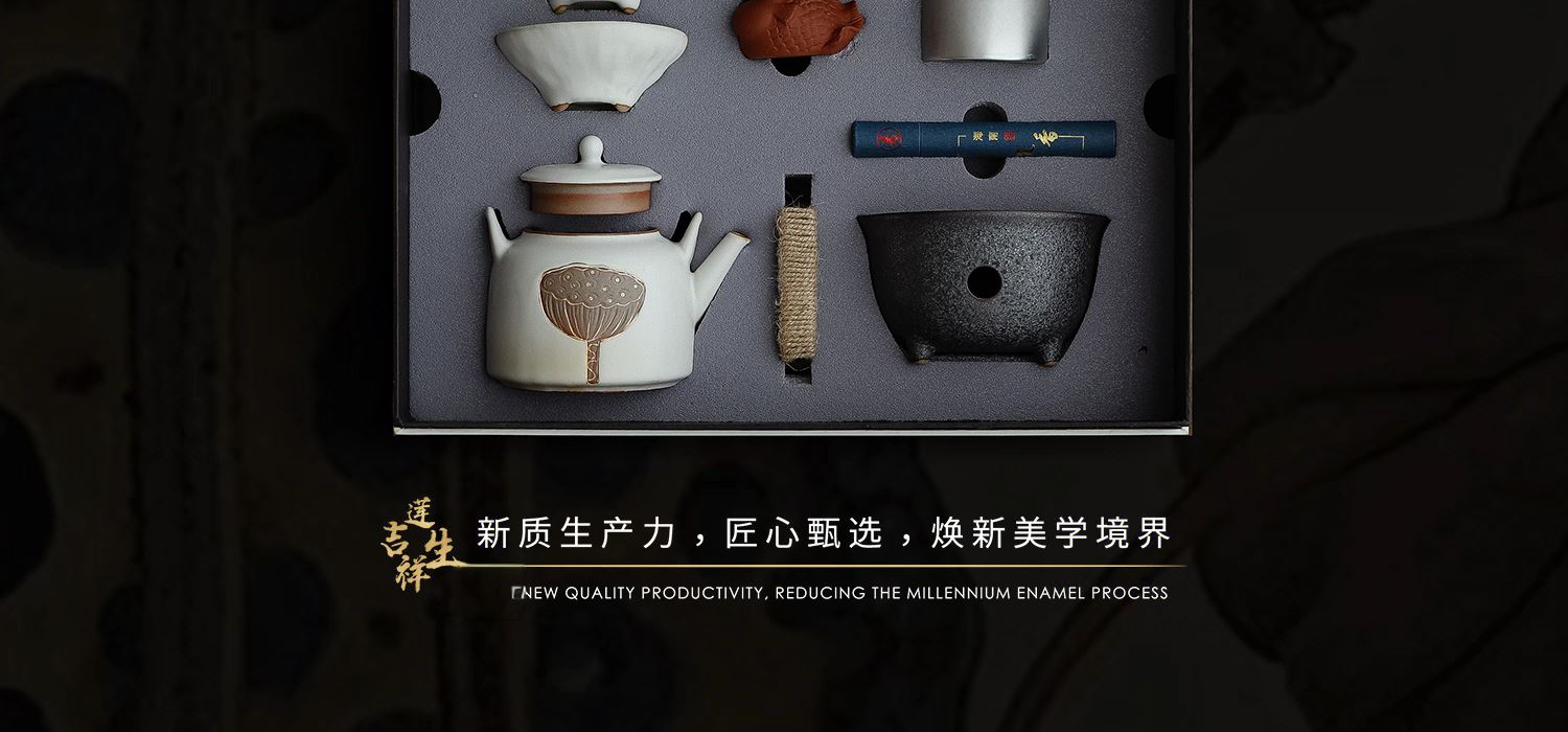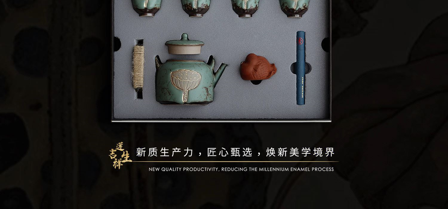 尾桥下窑青苔釉/雪岩泥莲生吉祥系列茶事套装年会伴手礼纪念品