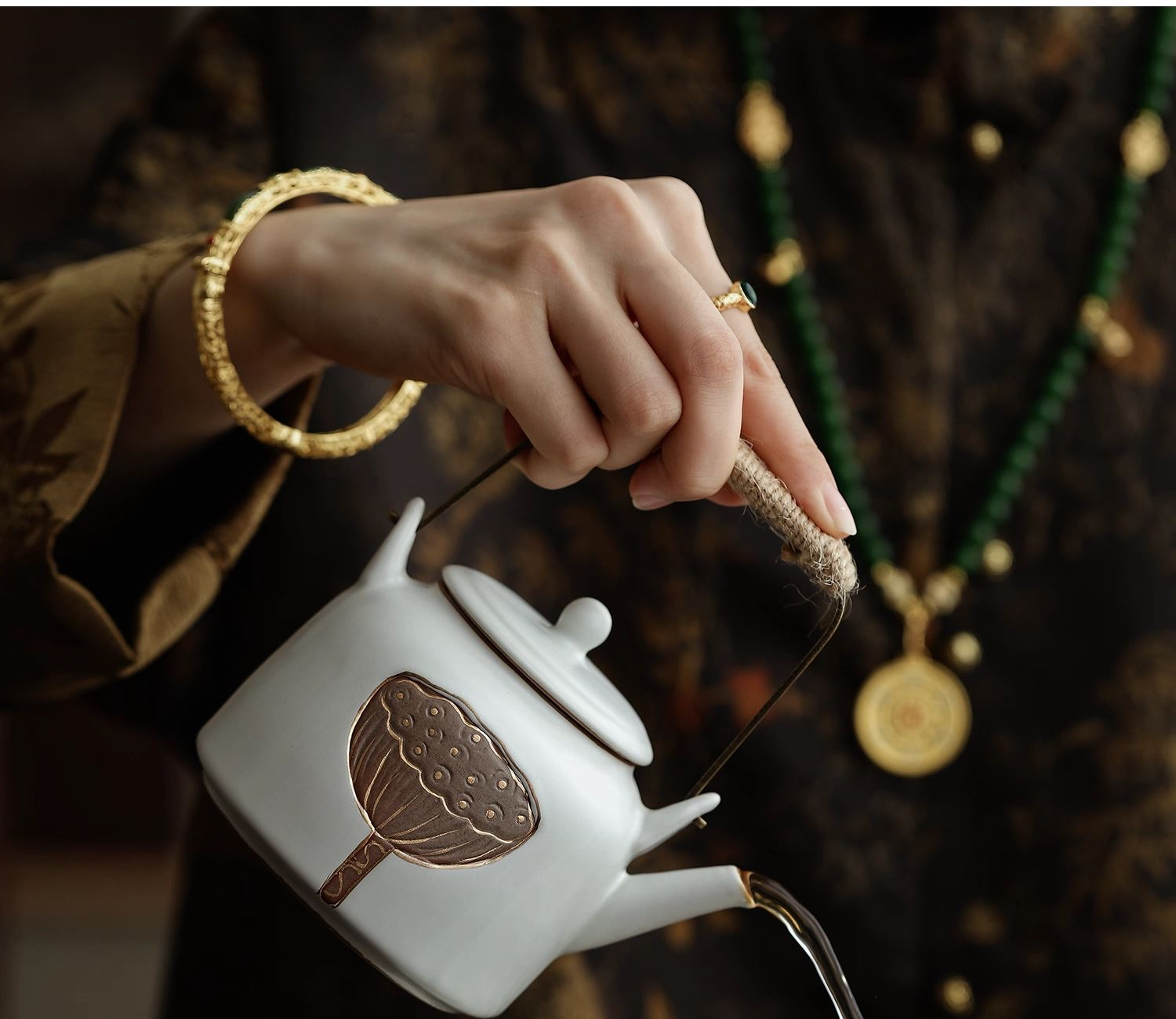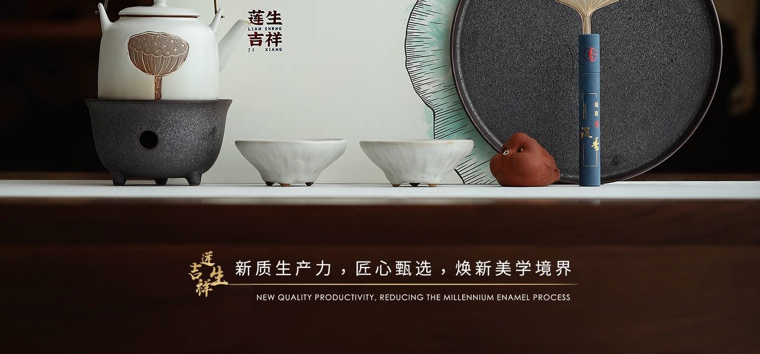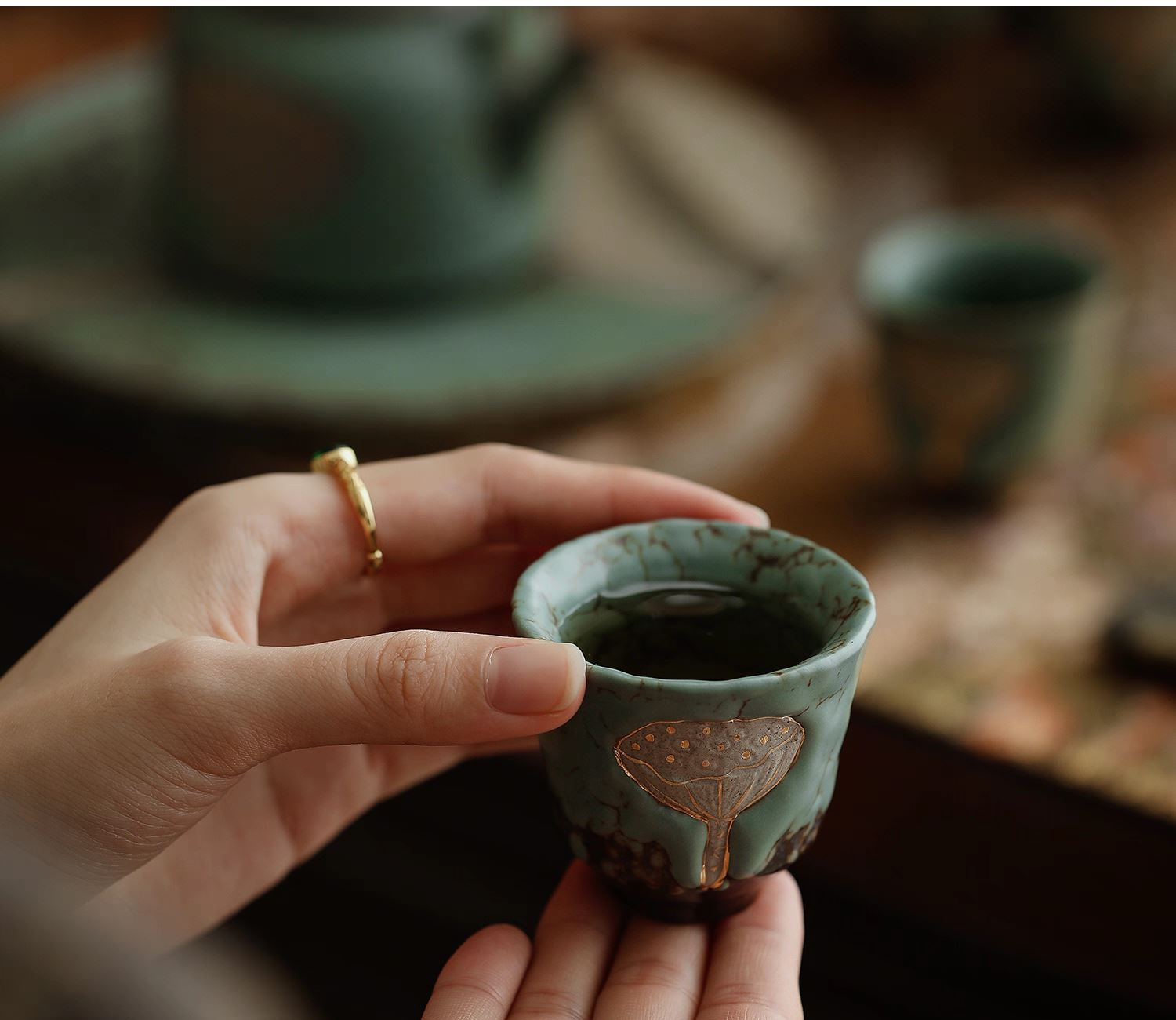 尾桥下窑青苔釉/雪岩泥莲生吉祥系列茶事套装年会伴手礼纪念品