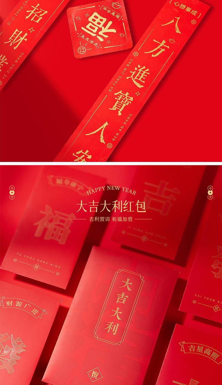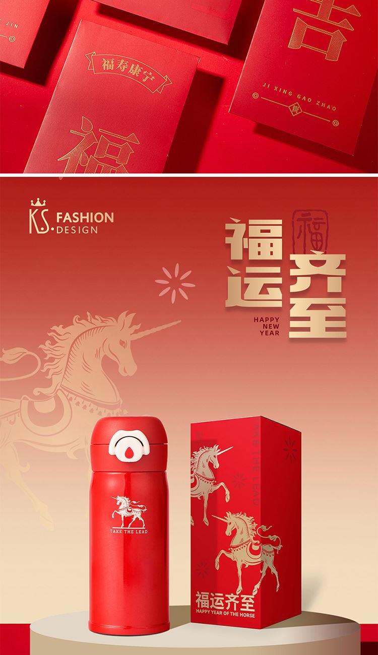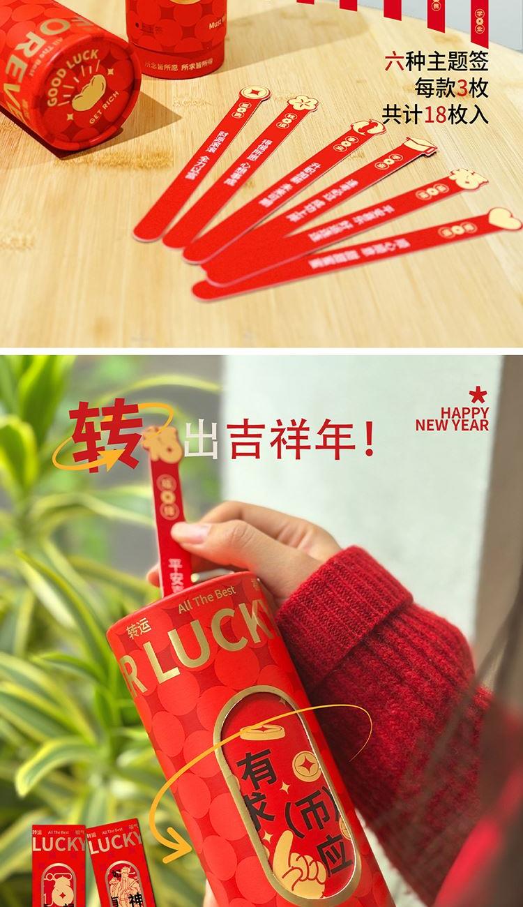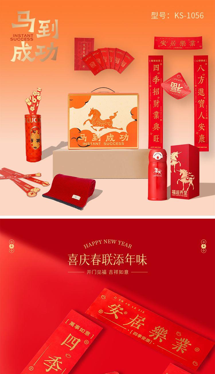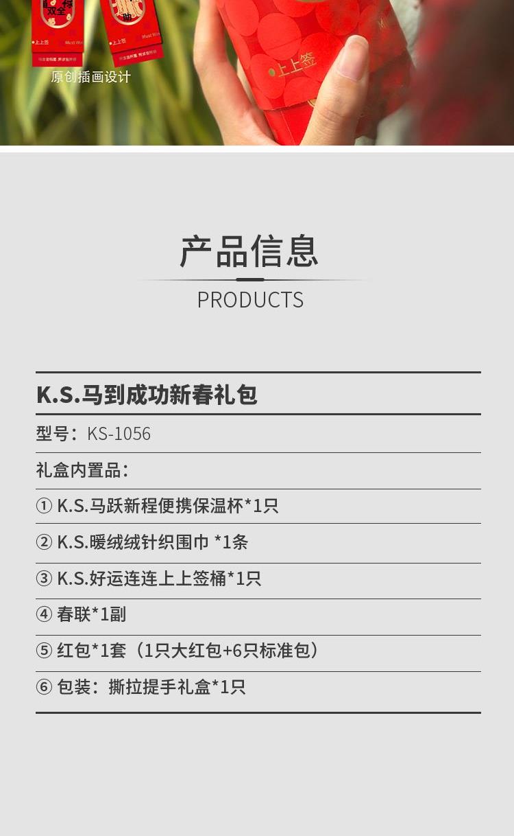 内含经典春联红包套装,保温杯、求签桶、针织围巾。