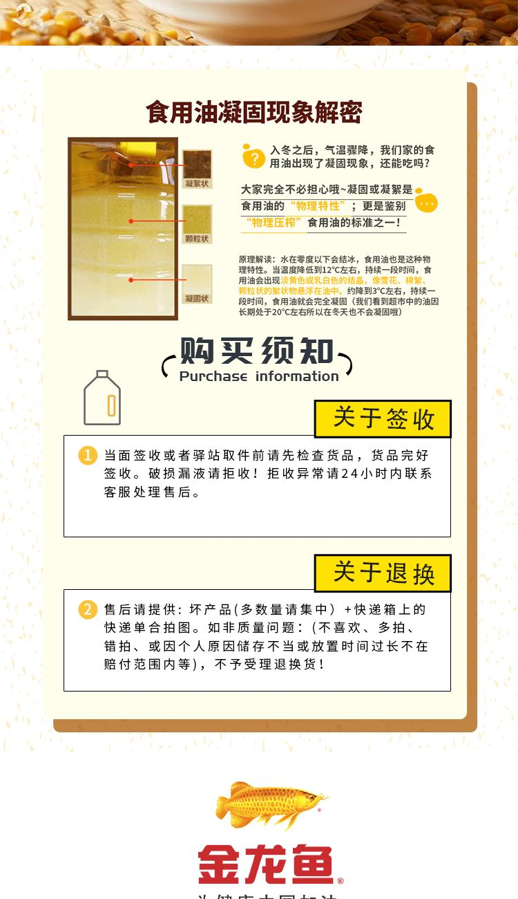 组合方式: 金龙鱼精萃稻米油1.5L 金龙鱼阳光零反式脂肪甾醇玉米油1.5L 中粮福临门苏韵荷香大米2.5kg 百果园|黄金百香果(大)16粒礼盒装(单果重70-90g) 推荐理由: 金龙鱼稻米油】精选稻米芯,小瓶鲜用不浪费,烹饪营养之选! 【皇家粮仓东北米】中粮背书+东北核心产区,小包装锁鲜,一口吃到地道东北香~ 【百果园鲜猕】酸甜刚好的神仙口感,萌趣包装颜值高,鲜果直供吃得鲜~ 生鲜售后规则: 1、生鲜类产品不支持7天无理由退换货服务,一旦发出,不支持拒收; 2、如有坏果请在签收后24小时内提供快递面单及坏果图片处理,超过24小时不予以处理,特殊情况不超过48小时(易损耗产品除外,如葡提、蓝莓、草莓等); 3、因买家地址不详、有误、电话联系不上、转寄等,造成签收延误以及因放置快递柜内个人原因未能及时取件而导致的水果腐烂变质等,无法进行售后处理; 4、不接受没有图片、逾期联系、个人主观喜好等理由的理赔诉求; 5、仅对生鲜水果本身进行售后,因运输途中包装磕碰、挤压等而产生的包装售后诉求,不做处理,请您谅解。 6、售后标准:坏果比例达50%及以上,整件进行补发;坏果比例小于50%的,按比例进行赔付。