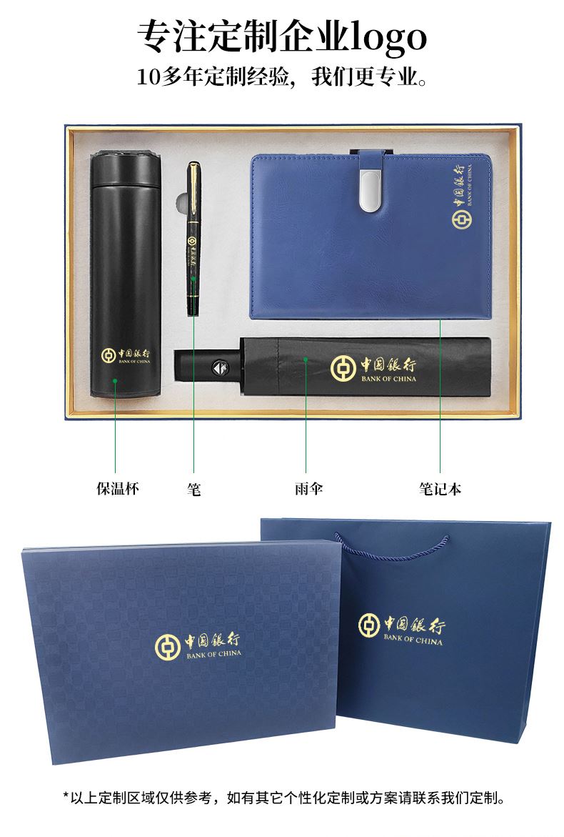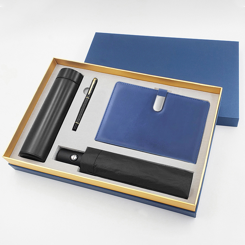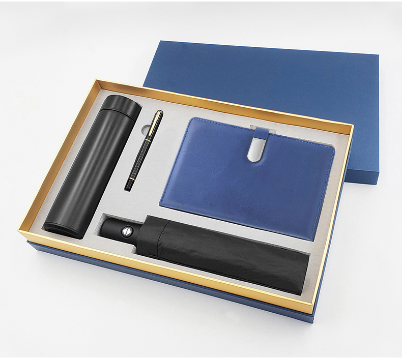 礼盒配置 : 304不锈钢保温杯(500毫升); A5搭扣硬皮PU皮笔记本 金属烤漆签字笔 全自动8骨三折伞 尺寸:280*56mm 包装盒尺寸: 400x265x75mm 手提袋尺寸: 410x292x85mm 重量:26kg/箱