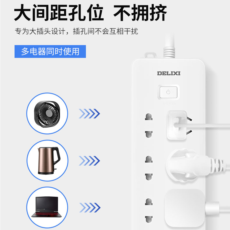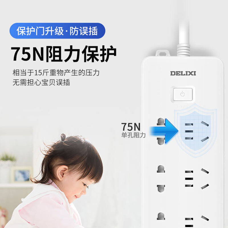 德力西电气CD98J-L排插三位五孔+三位二孔1.8米