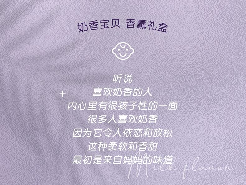 礼盒尺寸 :26.8x17.2x8cm 产品规格: 香薰蜡烛65g(预计燃烧时长18小时) 无火香薰100ml(预计散香时长30天) 香包10g(预计散香时长30天) 香味:奶气绵绵