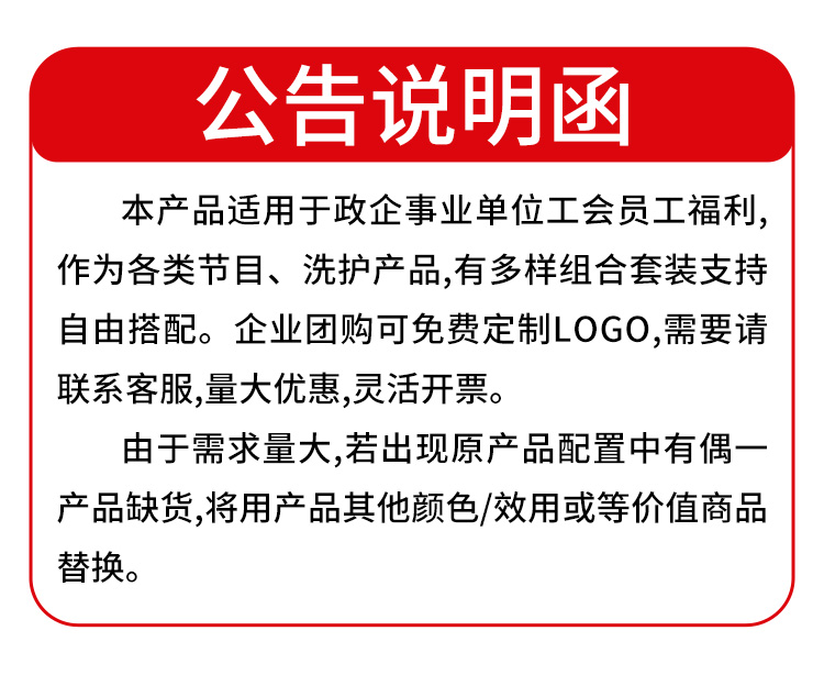 礼袋尺寸:20*27*10cm 包装尺寸:66* 45*51 CM 产品配置:(香型随机) 飘柔洗发水170ml 多芬沐浴露300ml 中华牙膏90g 优思洁牙刷 洗漱杯 暖水袋500ml 洋甘菊护手霜75g 热舒贴(2片装/袋)*2袋 凡士林倍护膏40g 精美礼袋