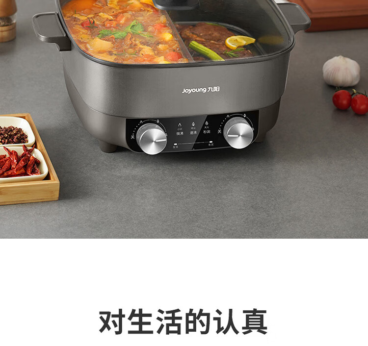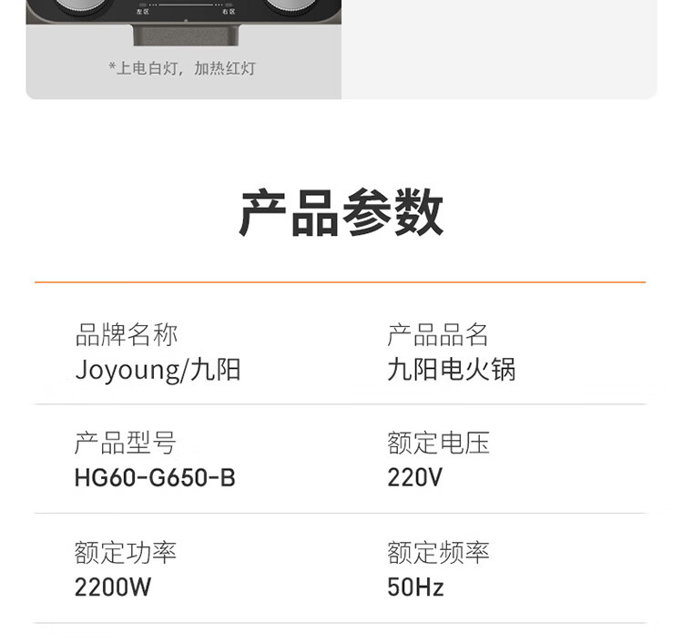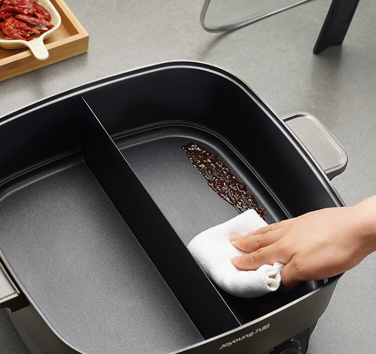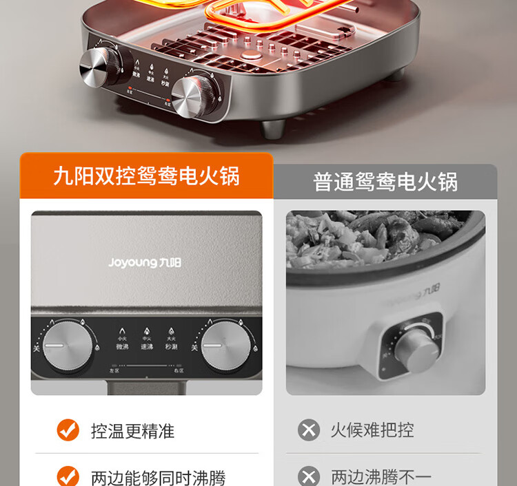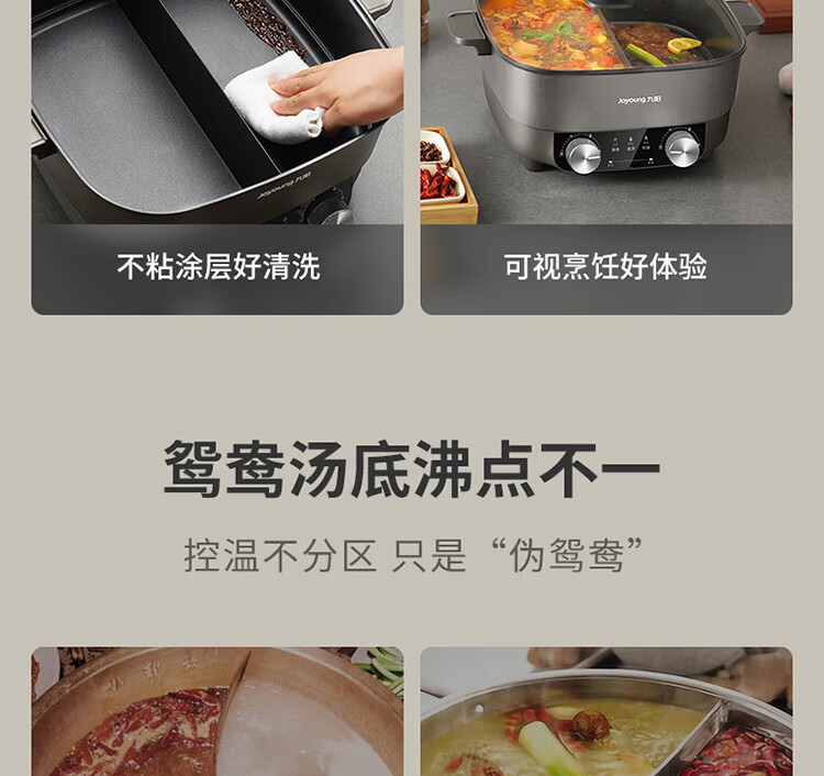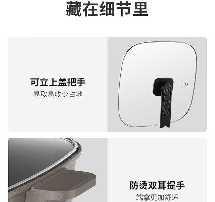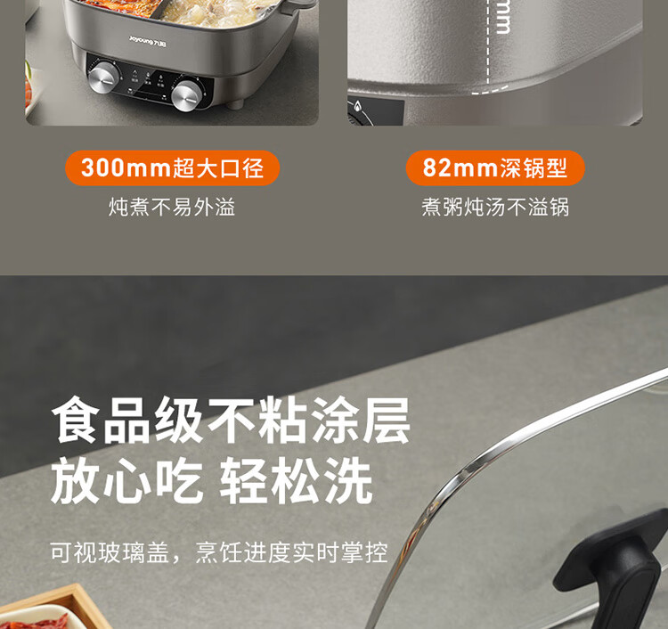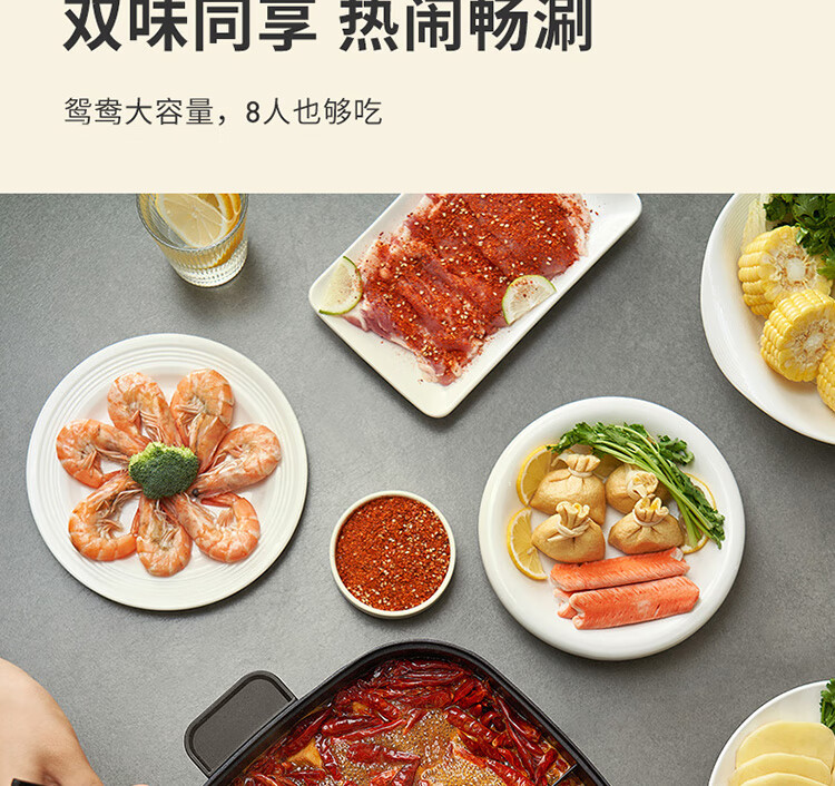 82mm锅身 6L大容量 不粘易清洗 2200W大功率 双旋扭功能:双区秒涮