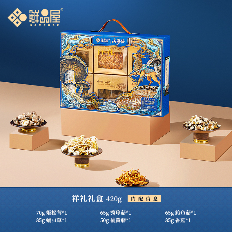 70g姬松茸*1 85g蛹虫草*1 65g秀珍菇*1 50g榆黄蘑*1 65g鲍鱼菇*1 85g香菇*1