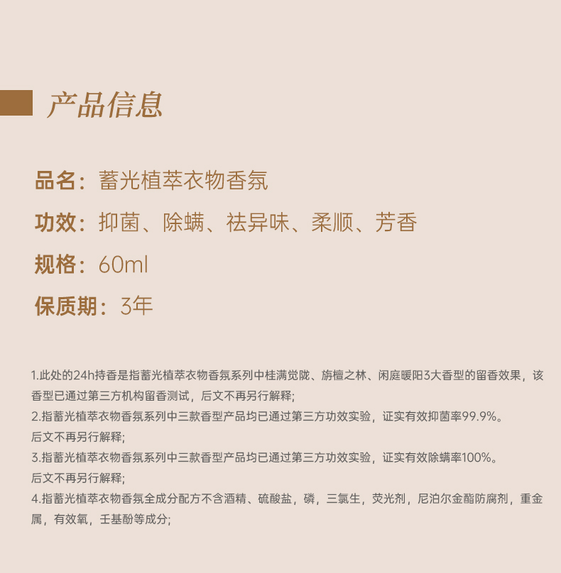 功效:除螨,增香 包装形式:瓶装 国产/进口:国产 保质期:1095天 净含量:60ml