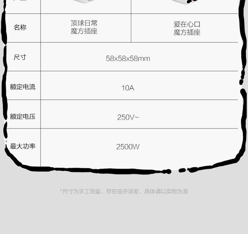 产品型号:CD98H-CK4X/B ML1、 CD98H-CK4X/B ML2 产品尺寸:58*58*58mm 产品重量:0.154kg 产品材料:PC材料 额定电流:10A 额定电压:250V 产品位数:总控、四位五孔、无线、4位5孔+总控开关,无线,纸盒包装,顶球日常,爱在心口,10A 250V~