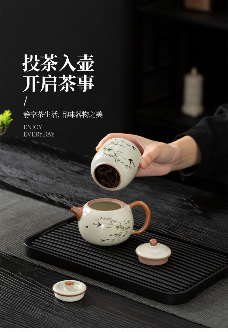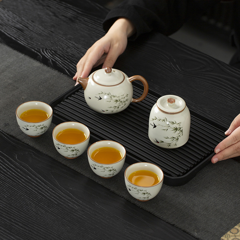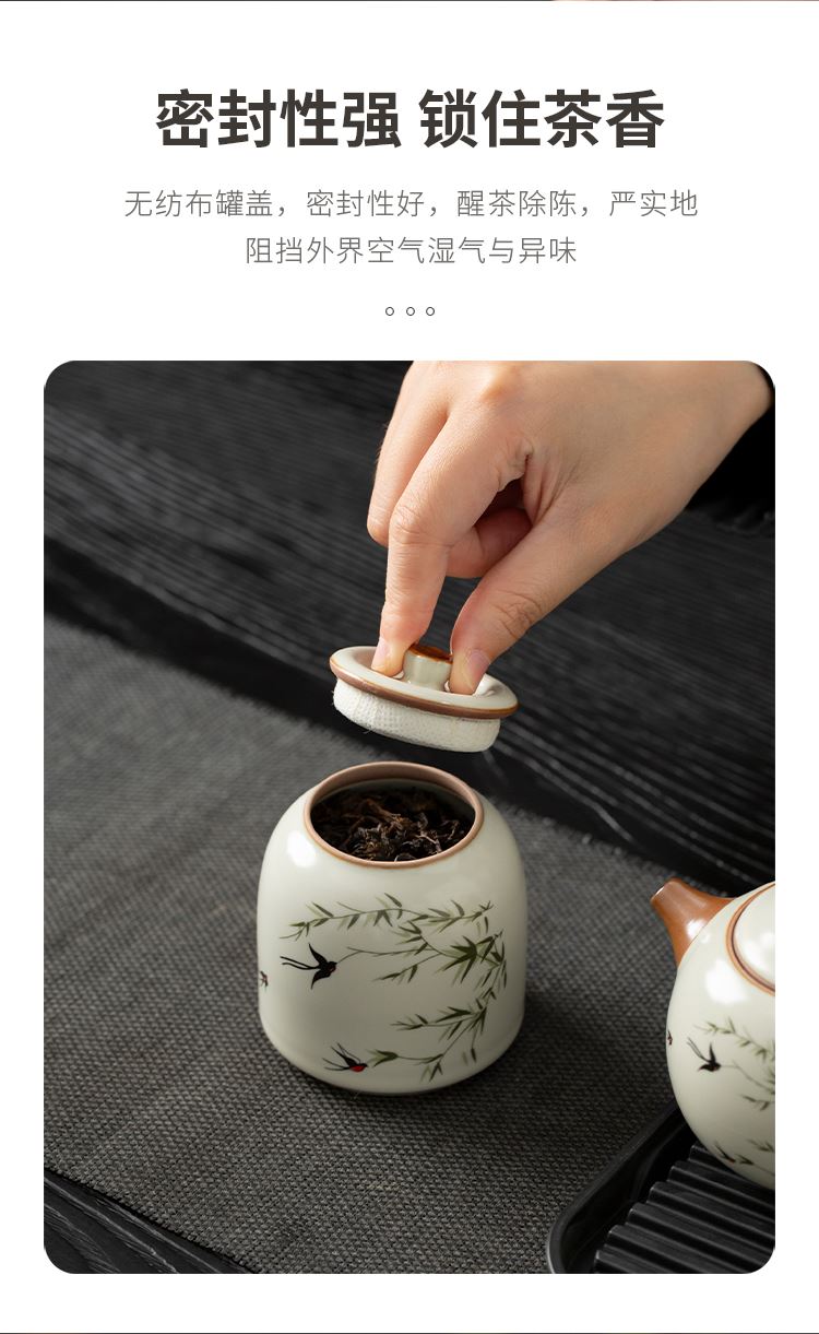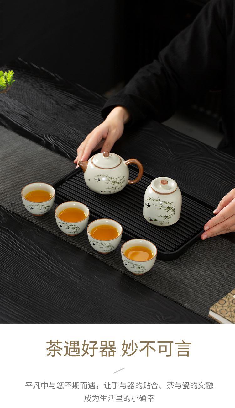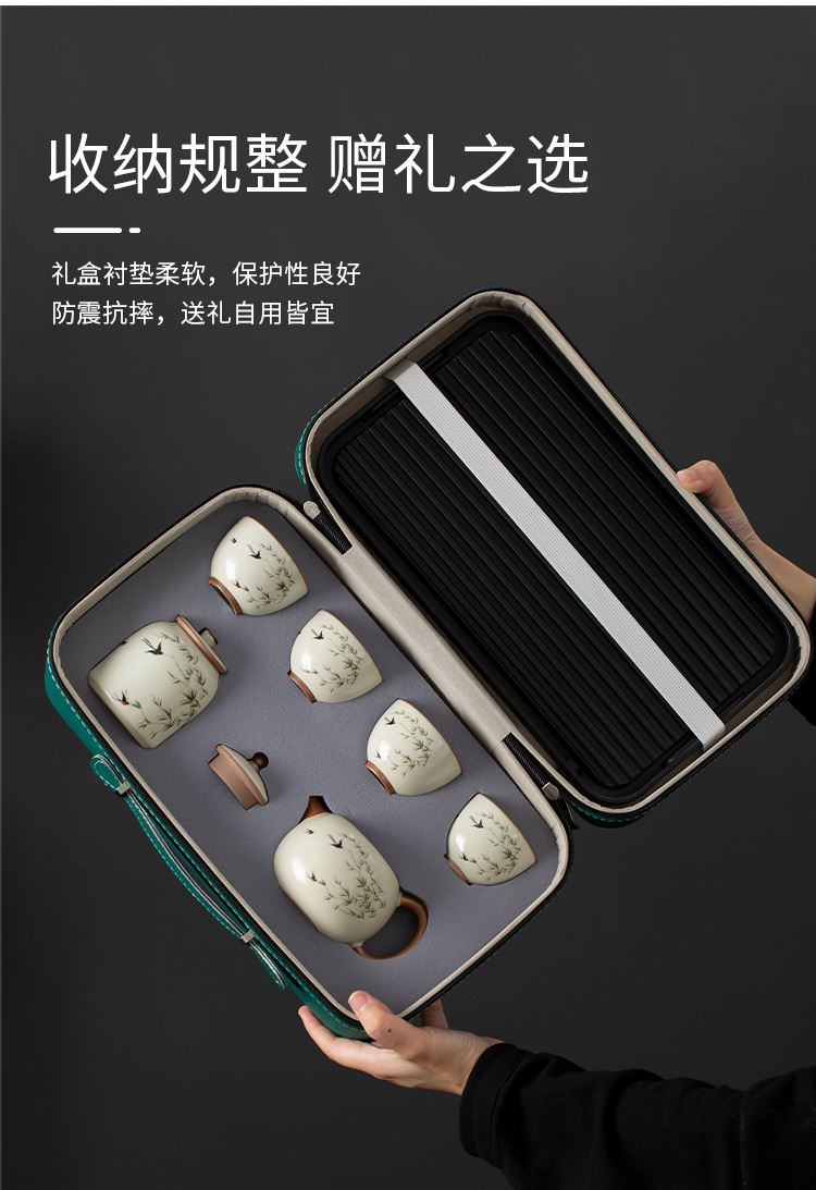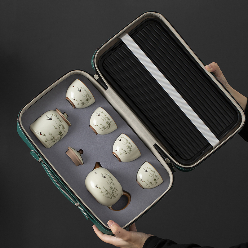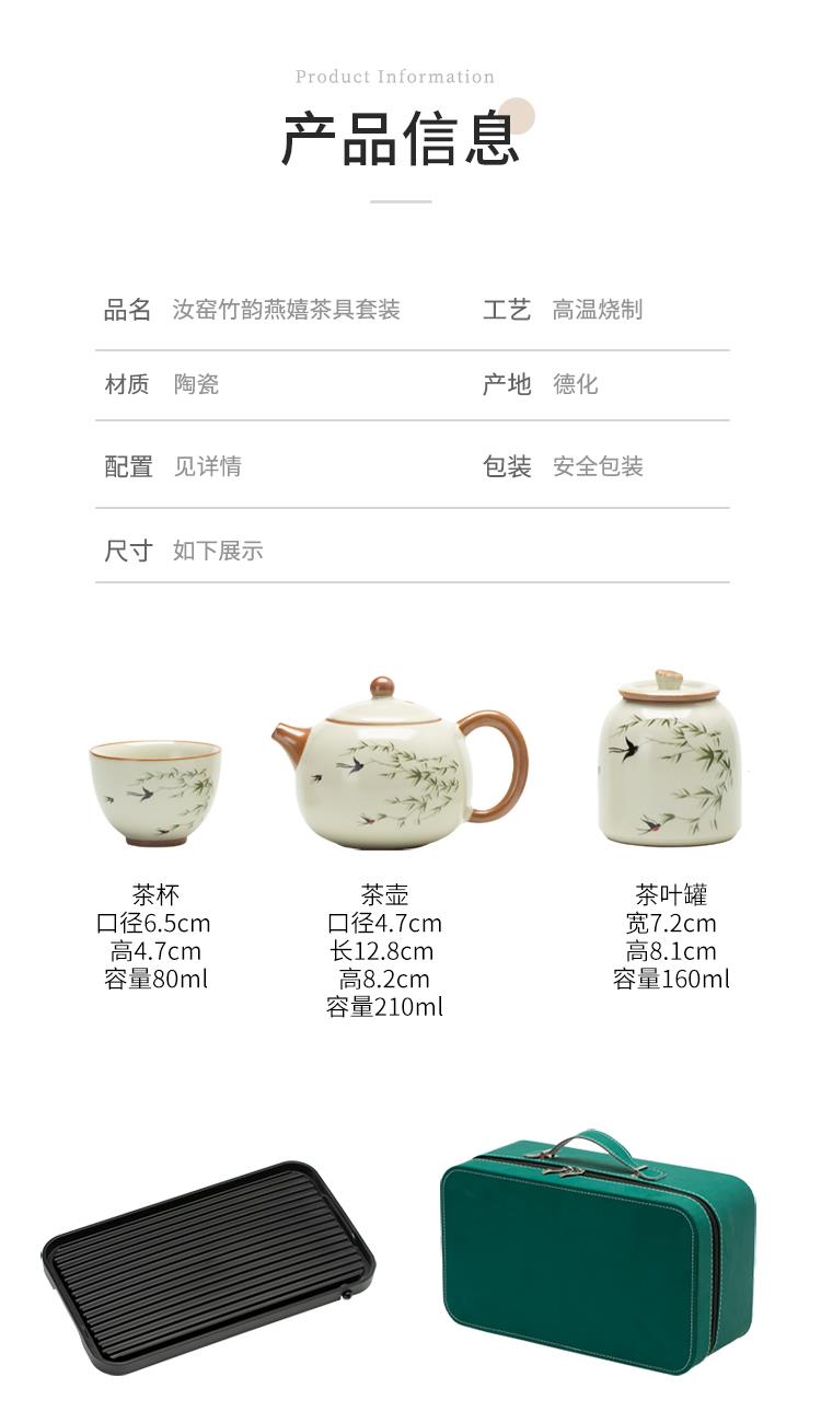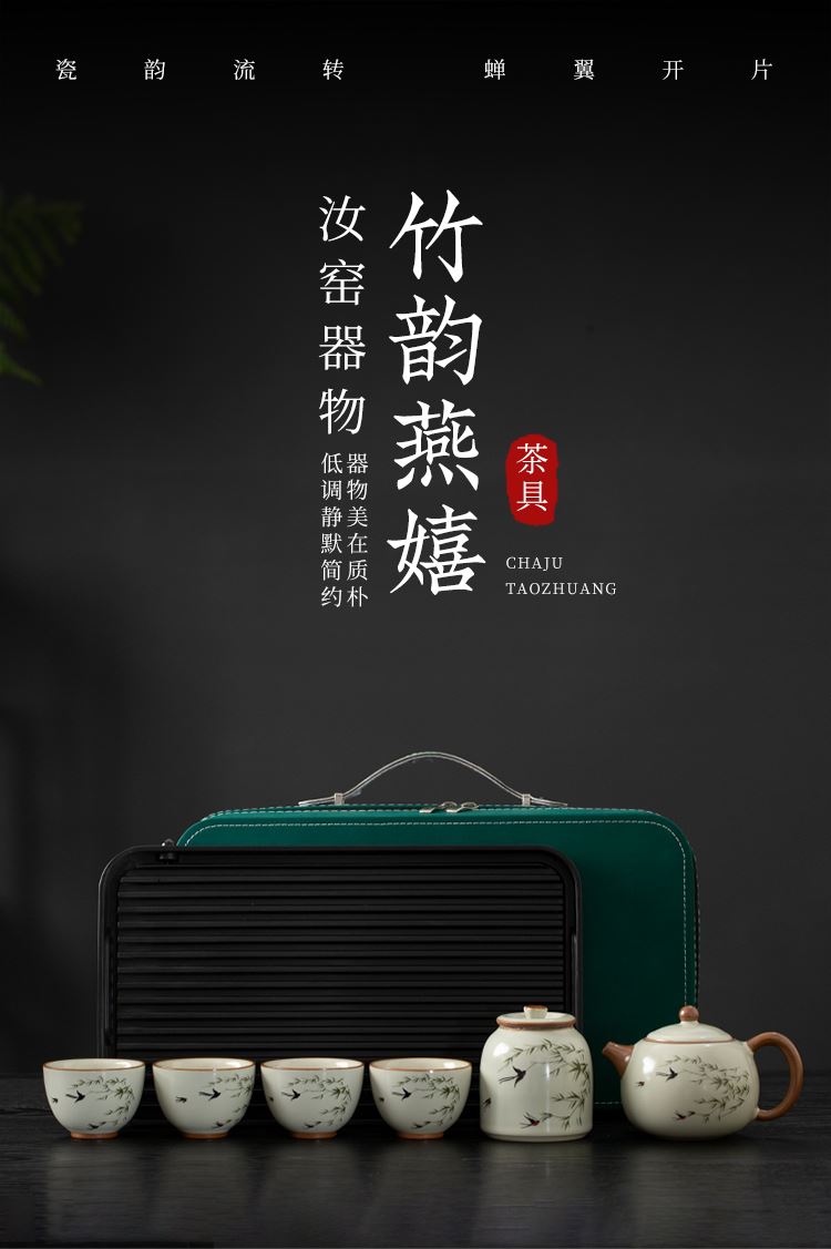 云博陶瓷汝窑燕衍春户外旅行茶具皮盒装一壶四杯配茶叶罐中国风