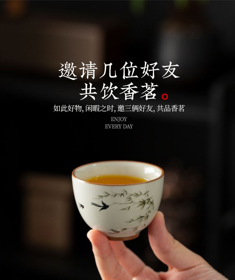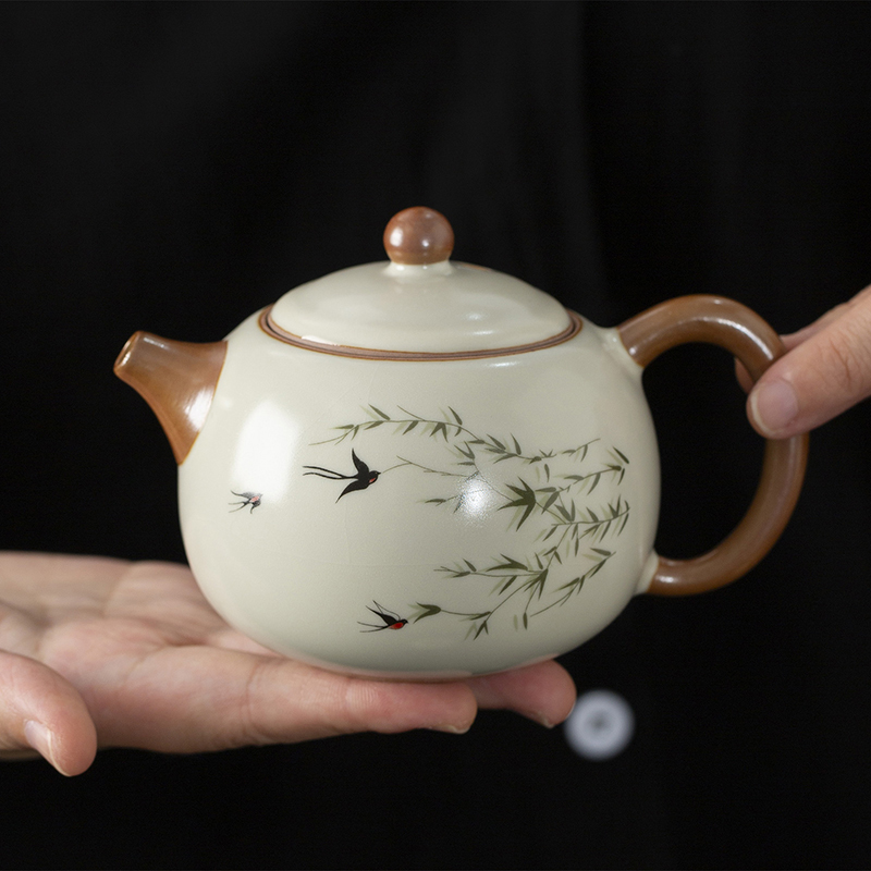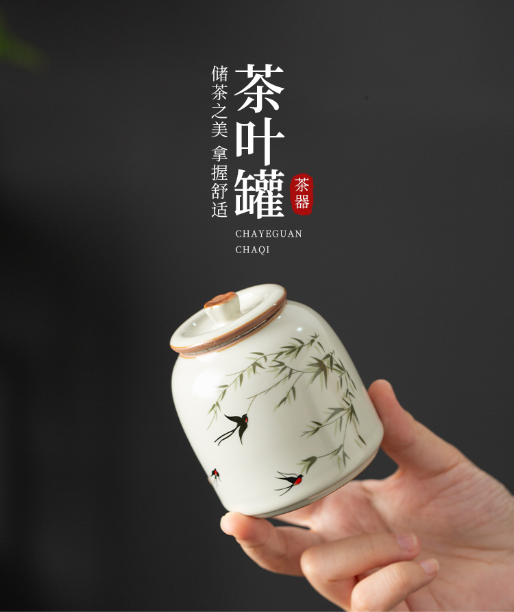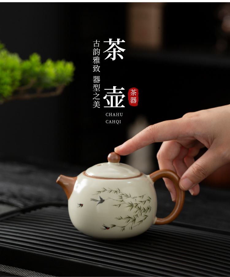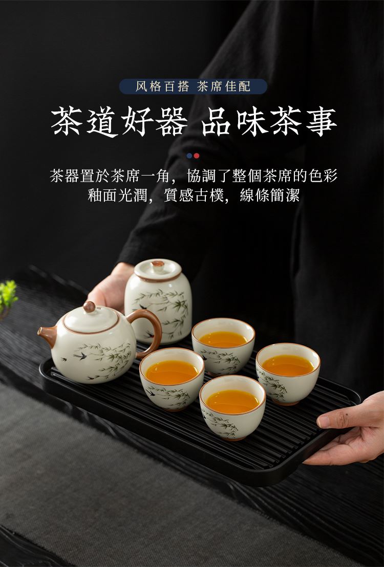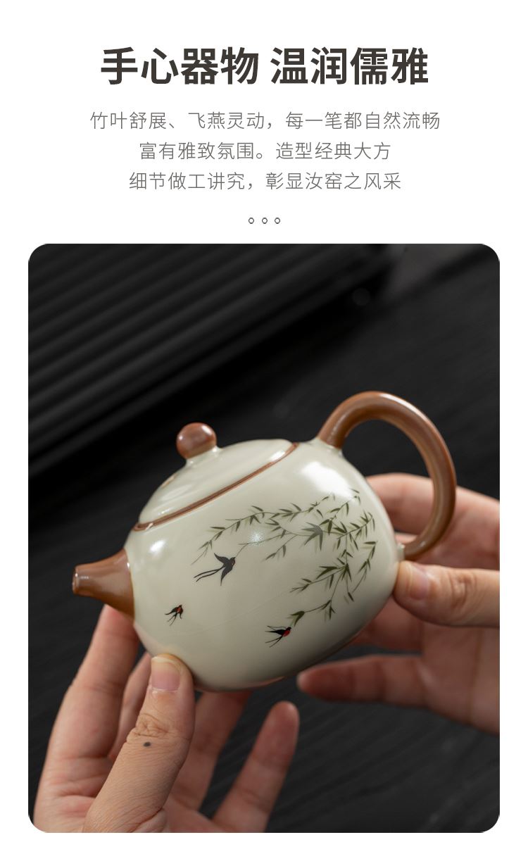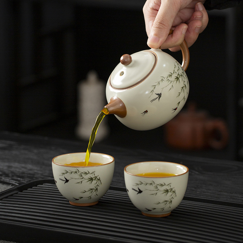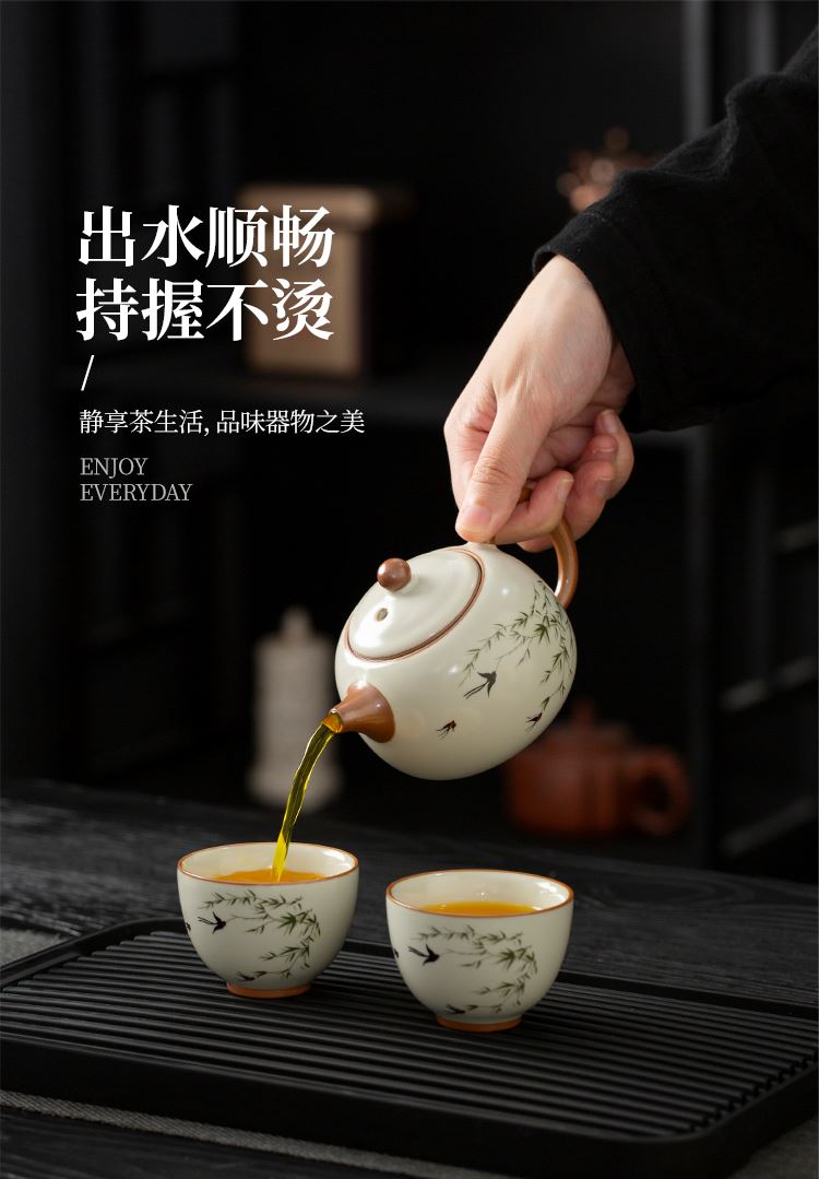 云博陶瓷汝窑燕衍春户外旅行茶具皮盒装一壶四杯配茶叶罐中国风