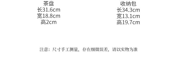 配置:品茗杯*4 西施壶*1 茶叶罐*1 茶盘*1 皮包*1 材质:汝窑 礼盒尺寸:34.2cm*13.2cm*19.5cm 产品尺寸:壶:210ml 品茗杯:80ml 茶叶罐160ml 茶盘:31.6cm*18.8cm*2cm