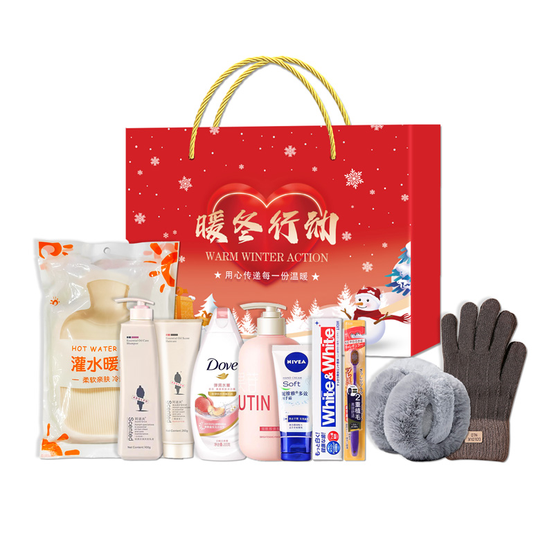 礼盒尺寸: 34*8.5*27cm 包装尺寸:69*37.5*56.5CM 产品配置:(香型随机) 阿道夫洗发水300ml 阿道夫焗油宝260g 多芬沐浴露300ml 妮维雅多效润手霜50g 保暖手套——五指触屏 保暖耳罩——可折叠 香氛身体乳300ml 暖水袋500ml 狮王牙膏120g 进口宽头软毛牙刷 精美礼盒
