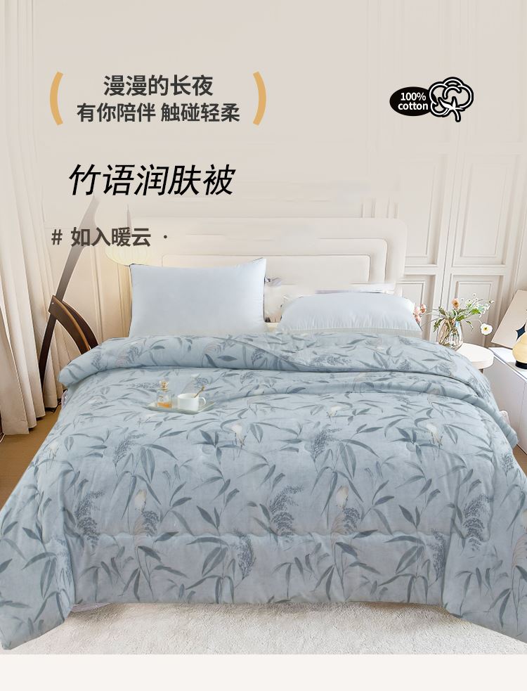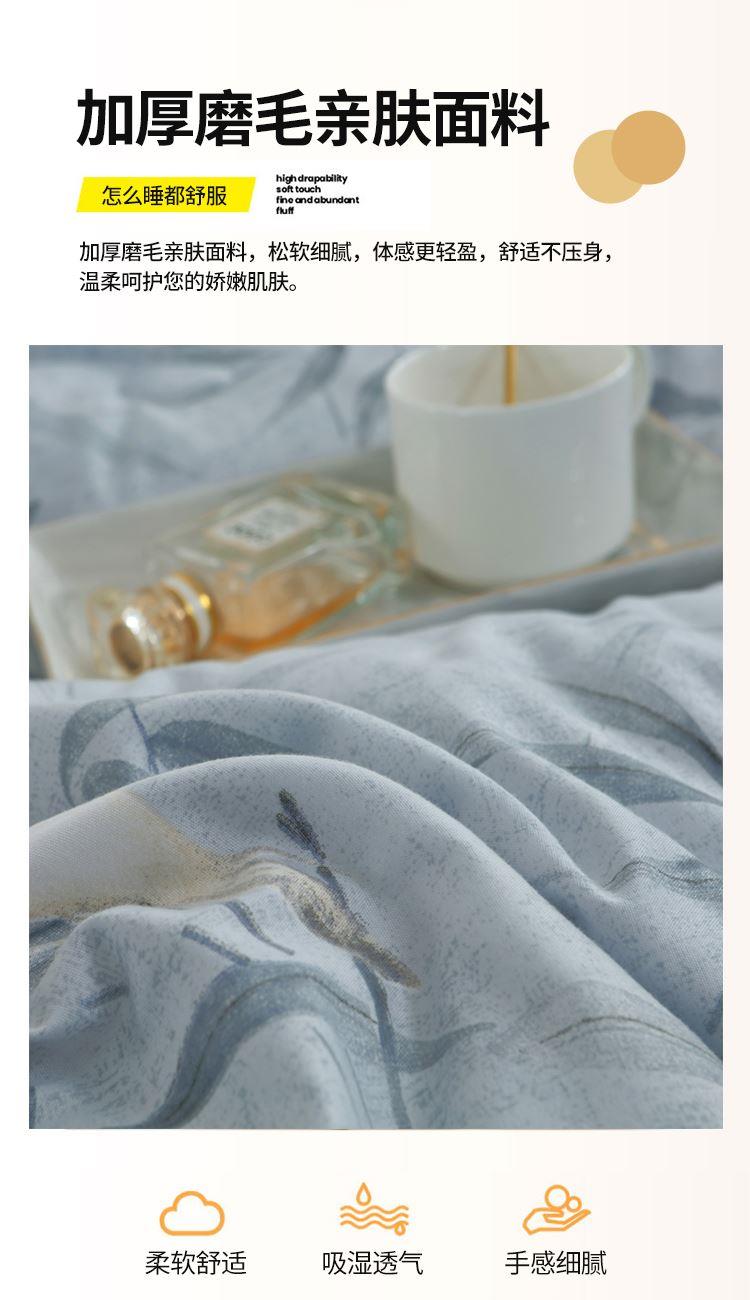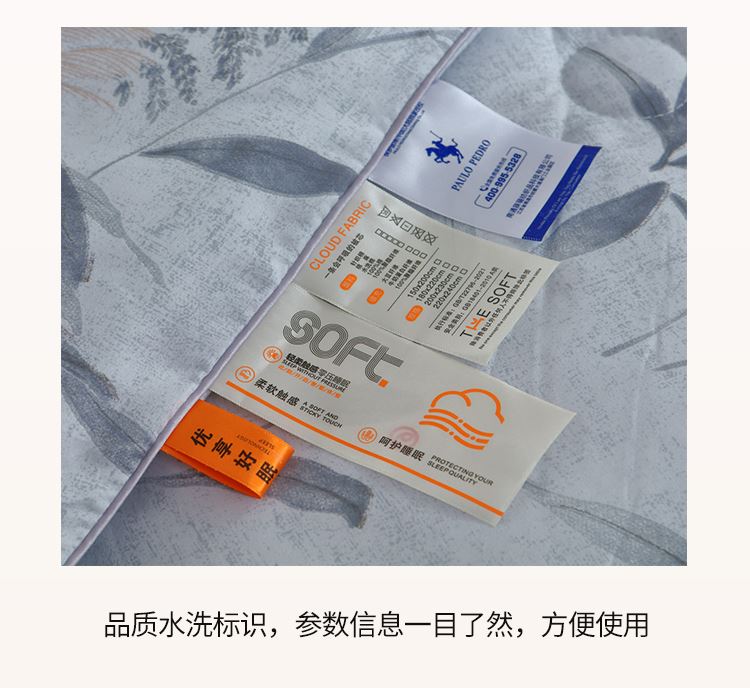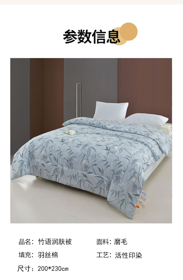 面料材质:磨毛 填 充:羽丝棉 产品规格:200*230cm 克 重:2000g 产品包装:精美礼盒 包装尺寸:50*40*20cm 1.磨毛质地细腻,软糯猫感,舒适绵柔。 2.羽丝绒填充,轻薄不压身。