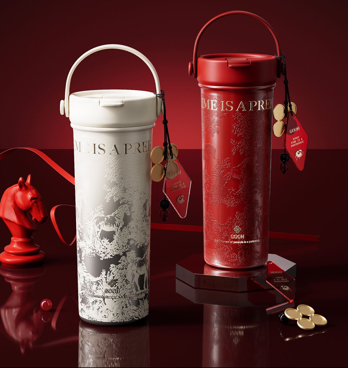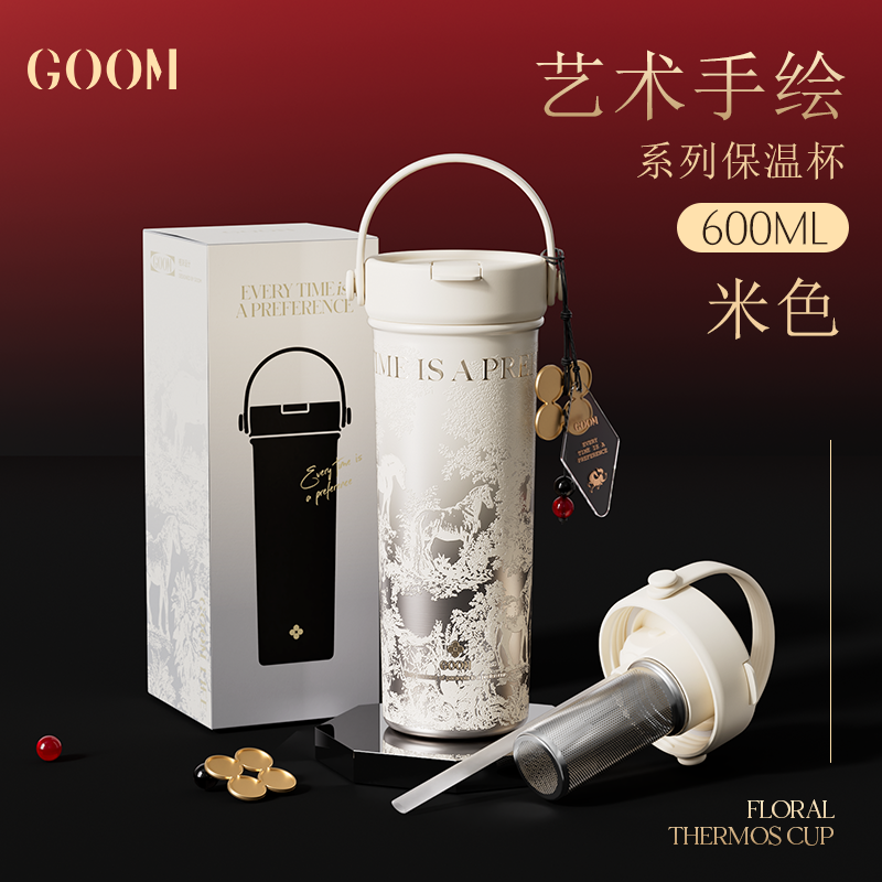 GOOM格沫艺术手绘系列保温杯(瑞马系列) 礼品已成功加入PPT!