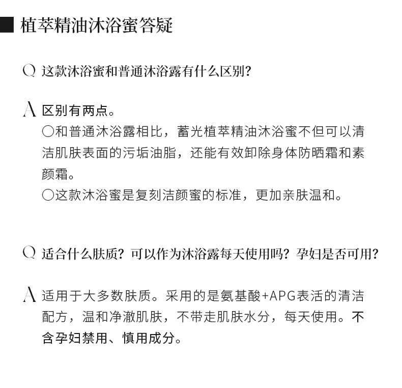 型号:沐浴蜜系列 容量:300ml 功效:滋润肌肤,缓解干燥,以油溶油 储存方法:阴凉干燥处保存