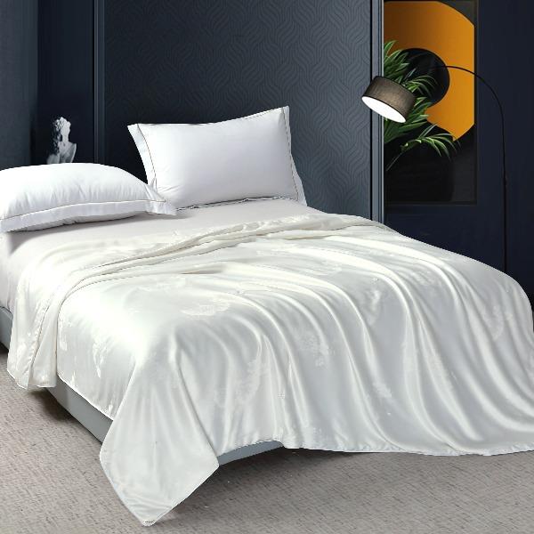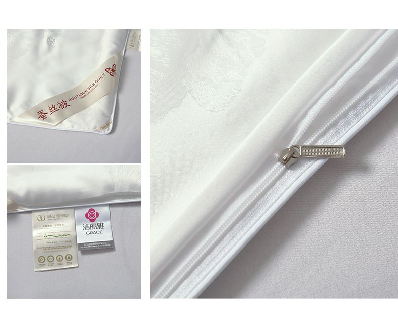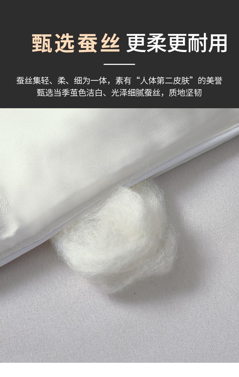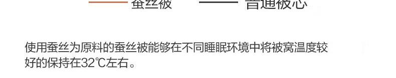 规格:200*230cm 面料:天贡缎提花 填充:蚕丝(中长丝) 重量: 2500g 执行标准:GB/T22796-2021 安全类别:GB18401-2010 B类 1、以再生纤维素纤维为原料,经过精梳工艺处理,面料手感柔软如贴身内衣,睡感舒适,透气。凉而不冰,触感舒适不粘身,有蚕丝的柔软与丝的冰滑,灵感加持,吸湿透气不闷热。 2、面料缩水率低,色牢度高,经洗耐用。