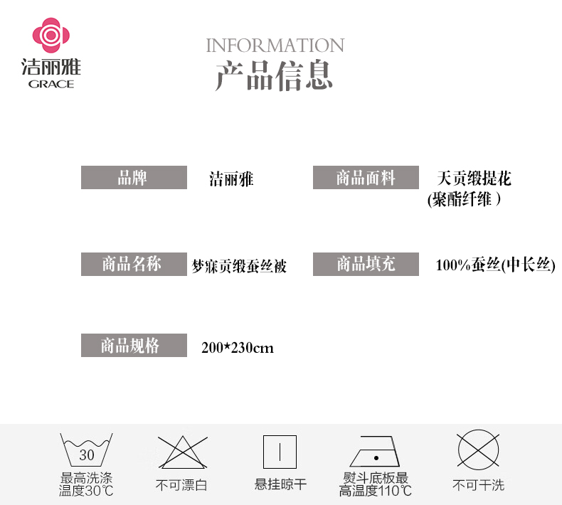 洁丽雅梦寐贡缎蚕丝被JLY-D2018