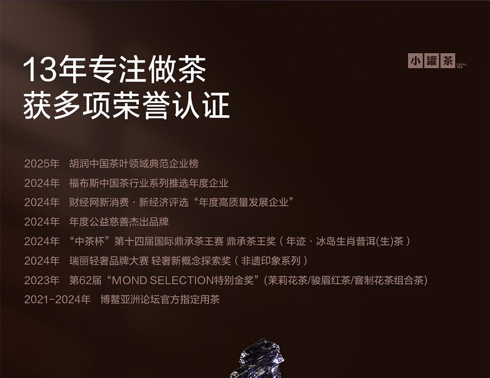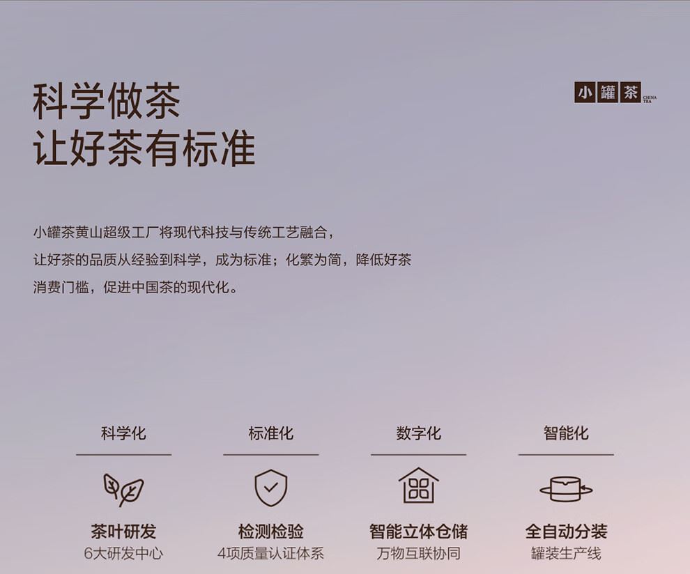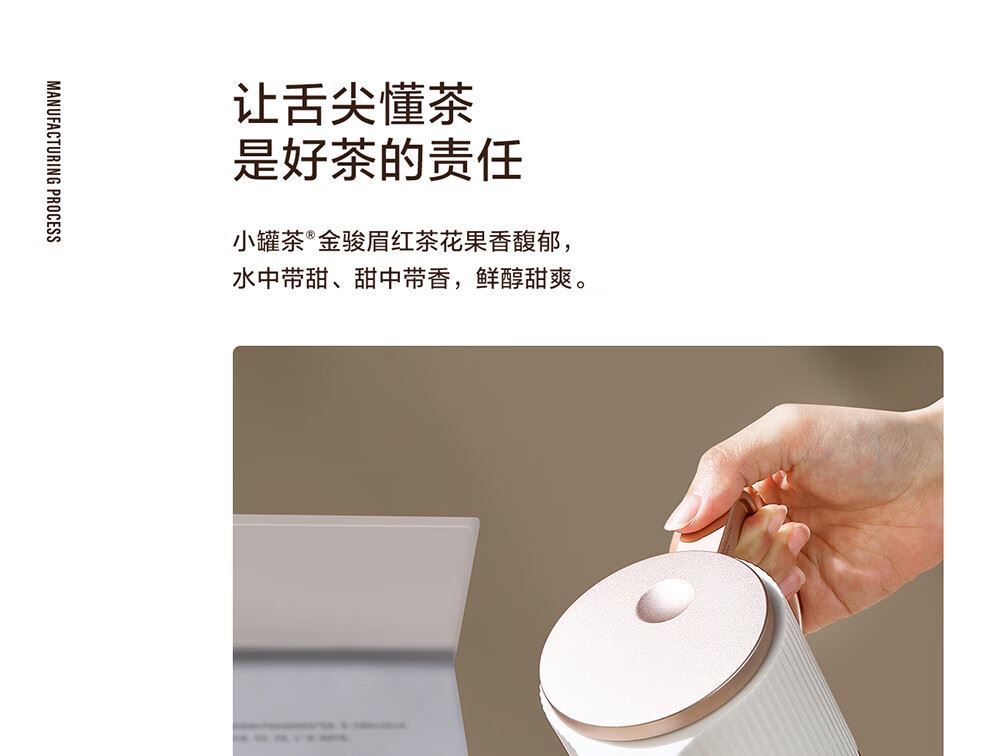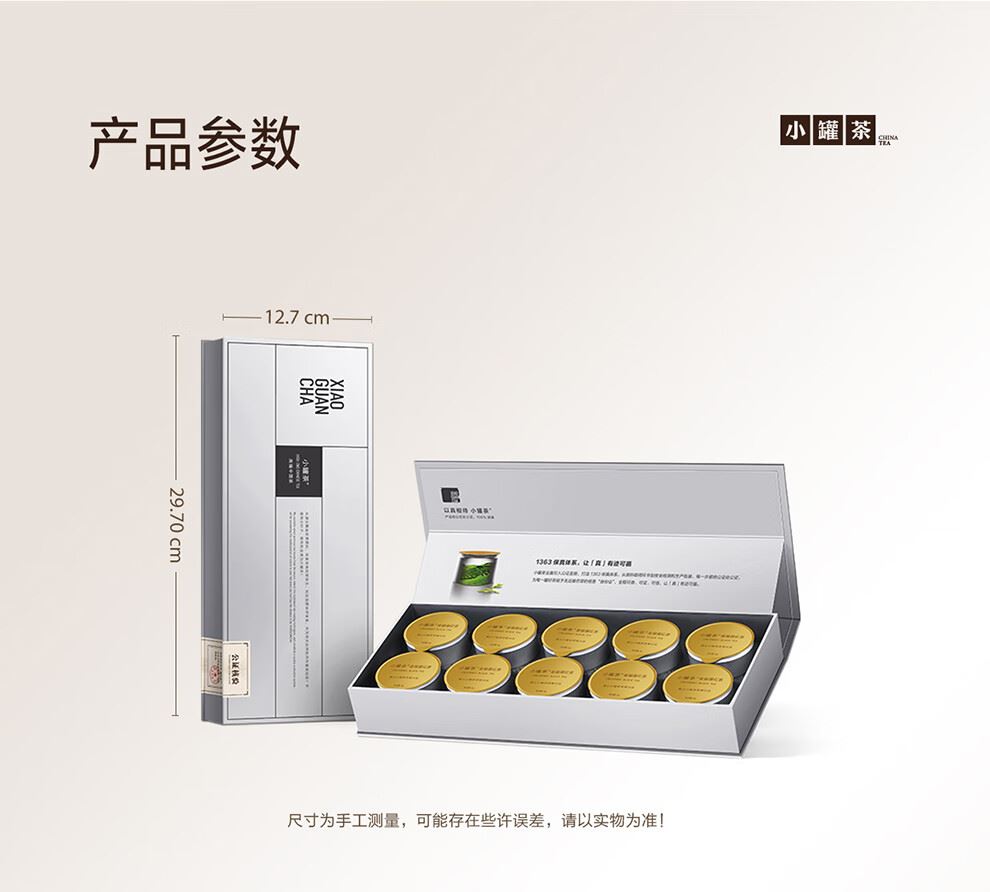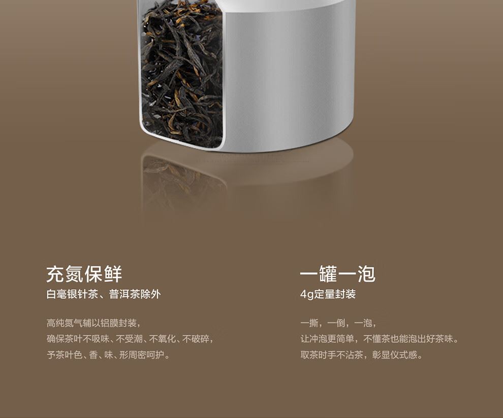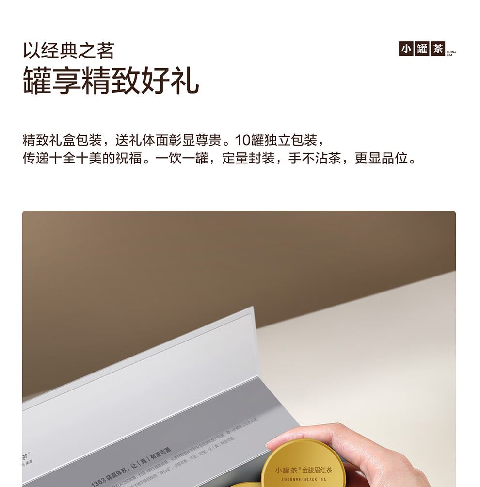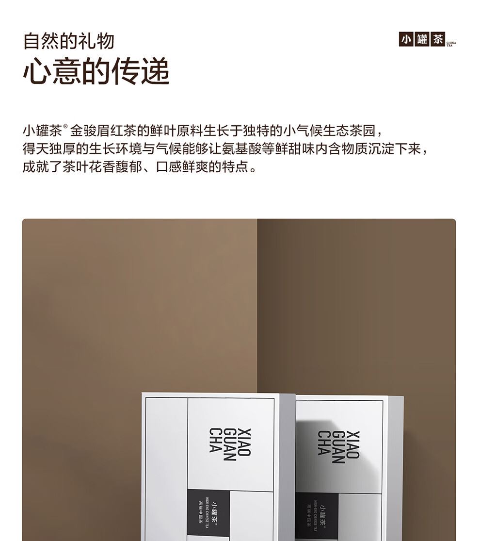 轻奢商务茶叶pinpai-小罐茶 小罐茶全国线下2000+实体门店 小罐茶 x 敢保真(产地保真、年份保真、安全保真) 档次商务送礼就送小罐茶 别具一格的花果香 科学拼配 | 新派金骏眉 | 花果香馥郁 银罐系列 · 金骏眉红茶10罐装 以经典之茗 罐享精致好礼 精致礼盒包装,送礼体面彰显尊贵。10罐独立包装,传递十全十美的祝福。一饮一罐,定量封装,手不沾茶,更显品位。 自然的礼物 心意的传递 小罐茶金骏眉红茶的鲜叶原料生长于独特的小气候生态茶园,得天独厚的生长环境与气候能够让氨基酸等鲜甜味。